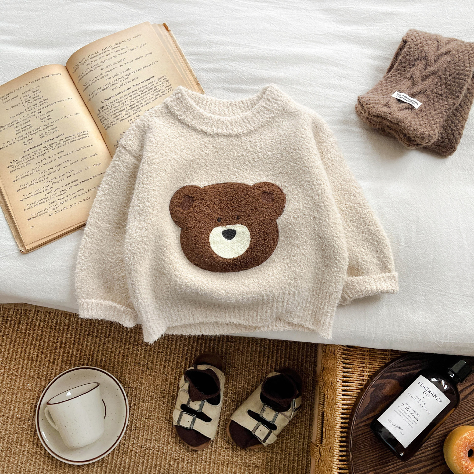 한국 스타일 소녀의 가을과 겨울 봉제 부드러운 왁스 스웨터 서양식 아기 귀여운 만화 두꺼운 풀오버 따뜻한 니트 스웨터스토어 가기