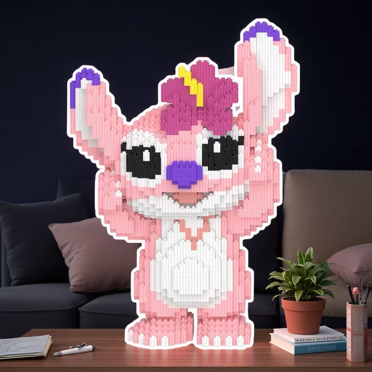거대한 스티치 천사 작은 입자 빌딩 블록 퍼즐 소년과 소녀 만화 인형 어린이 조립 장난감 선물