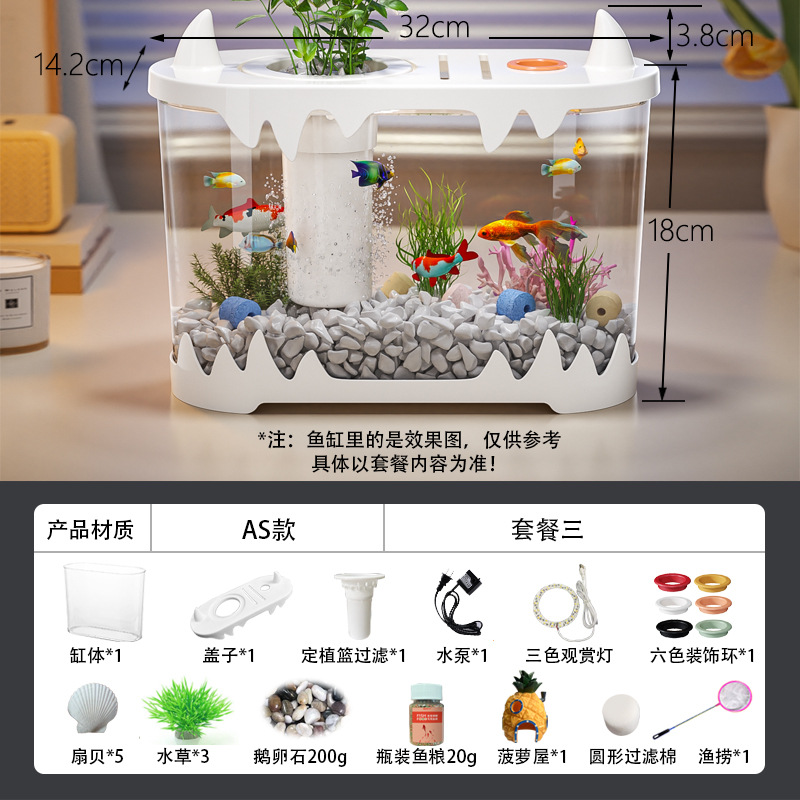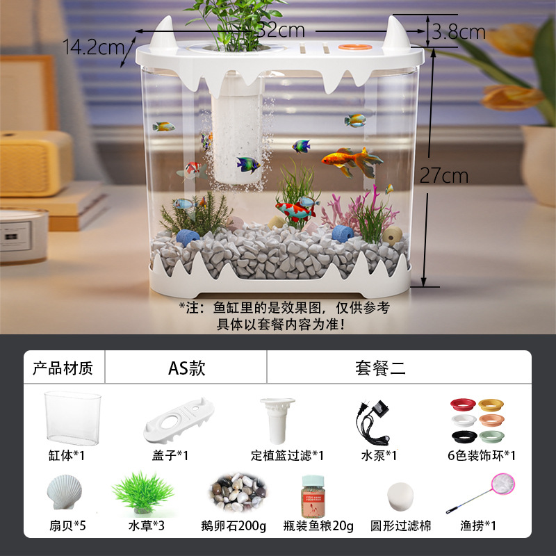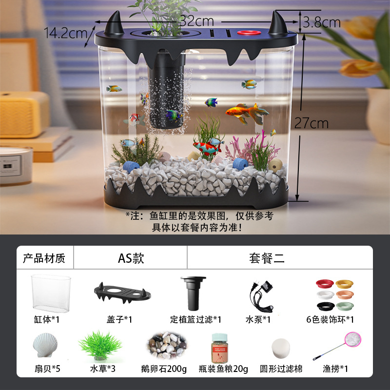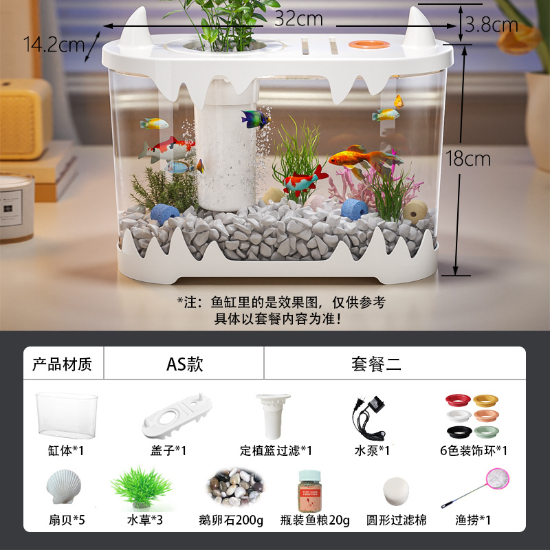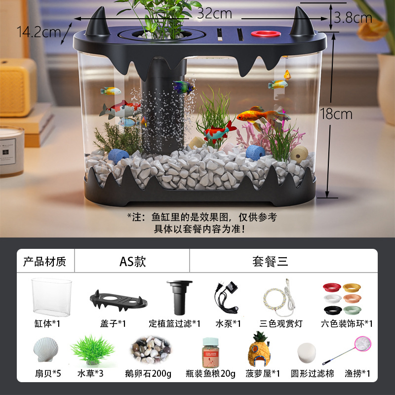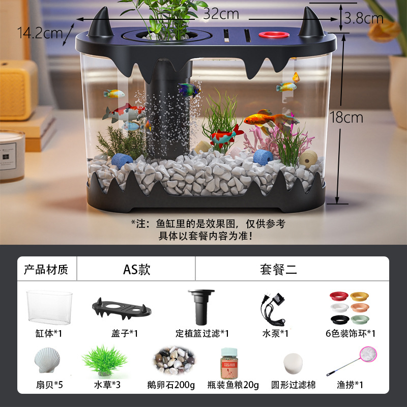 데스크탑 물고기 탱크 풍경 마이크로 풍경 순환 탱크 작은 가정용 투명한 물없는 필터 통합 플라스틱 특수 목적스토어 가기