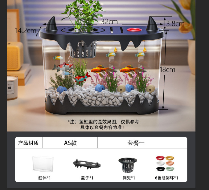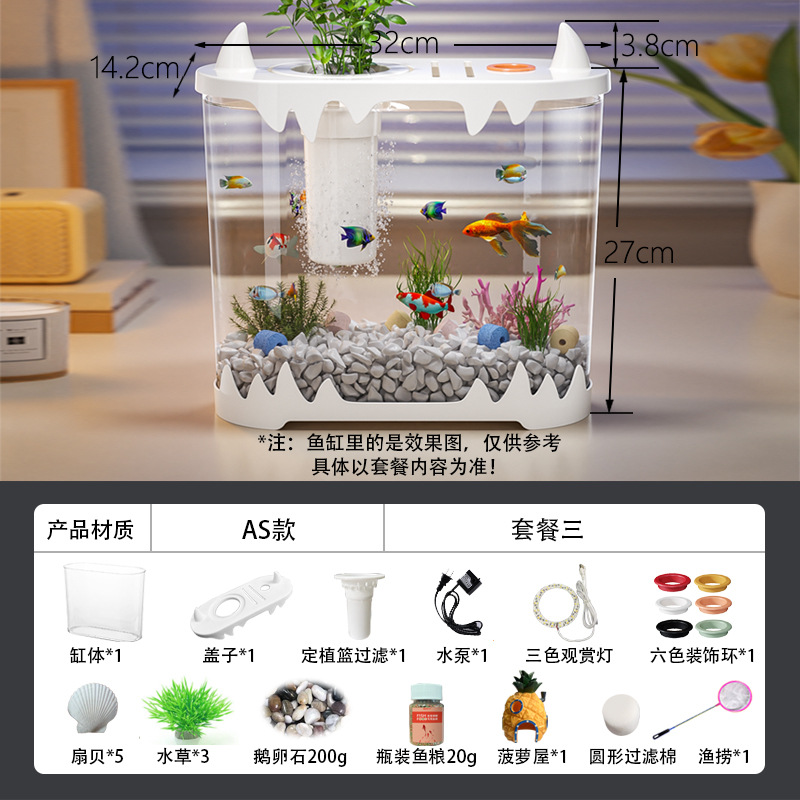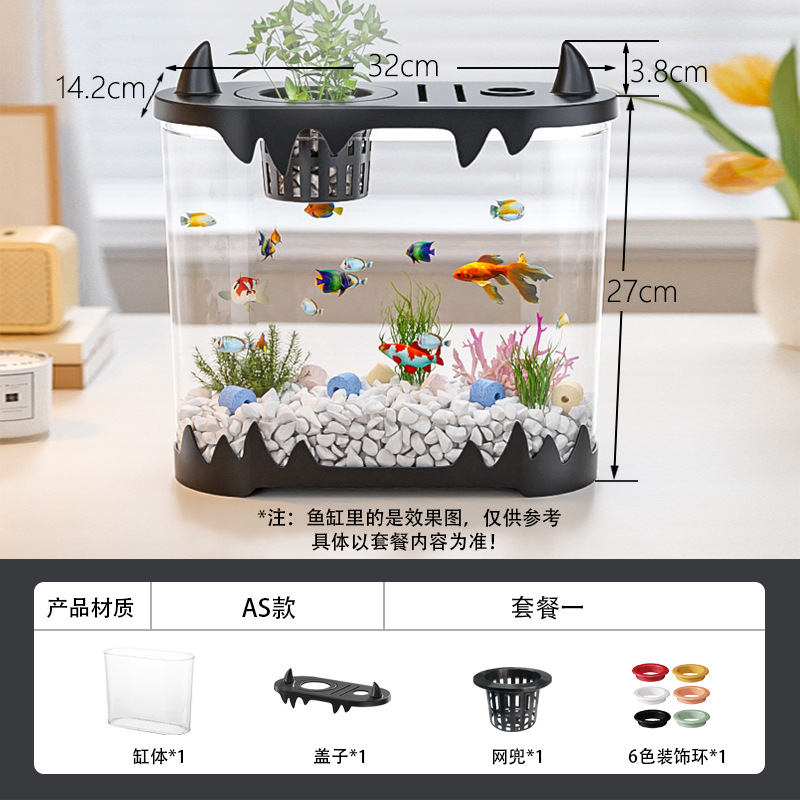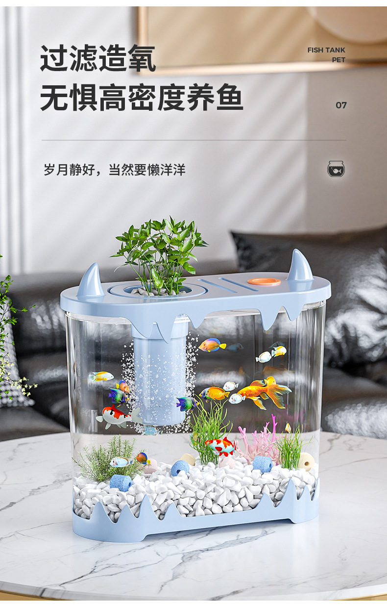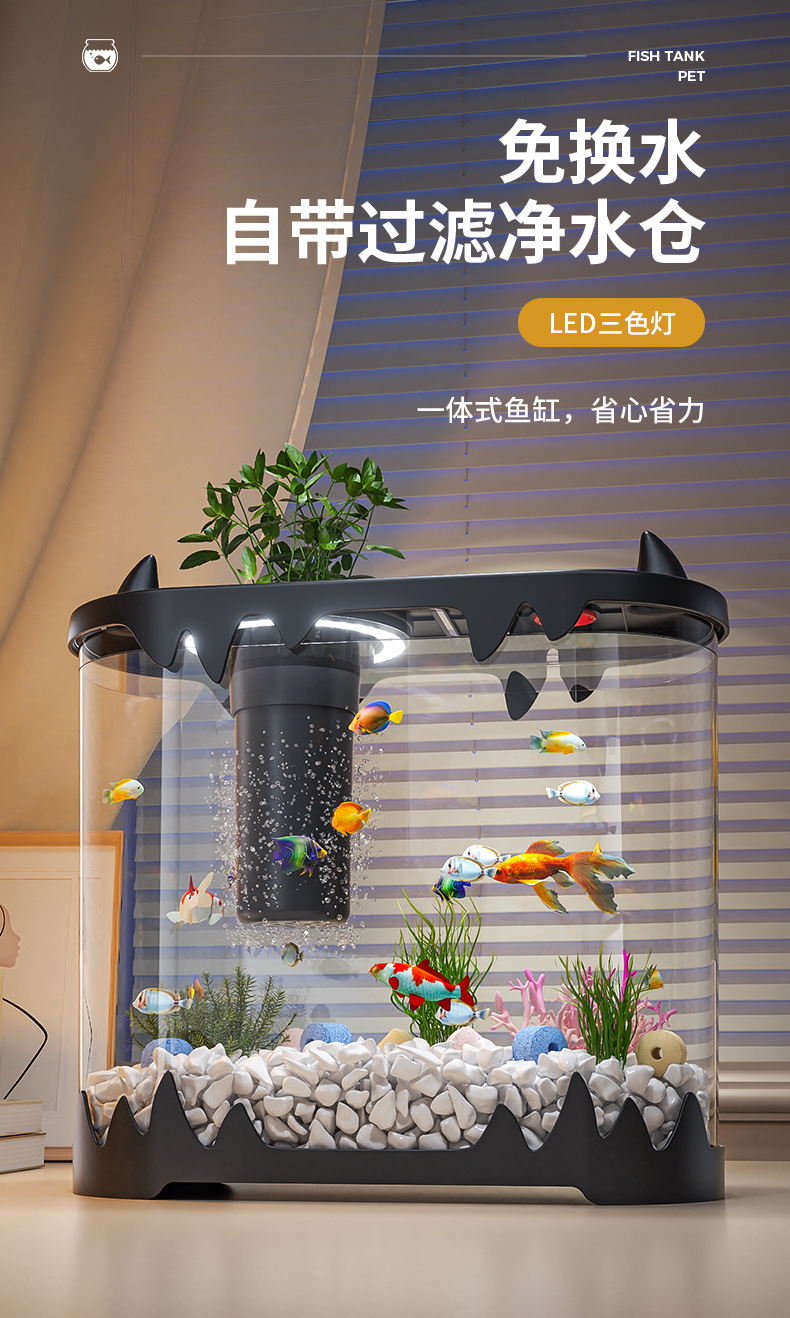 데스크탑 물고기 탱크 풍경 마이크로 풍경 순환 탱크 작은 가정용 투명한 물없는 필터 통합 플라스틱 특수 목적스토어 가기
