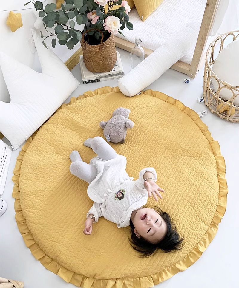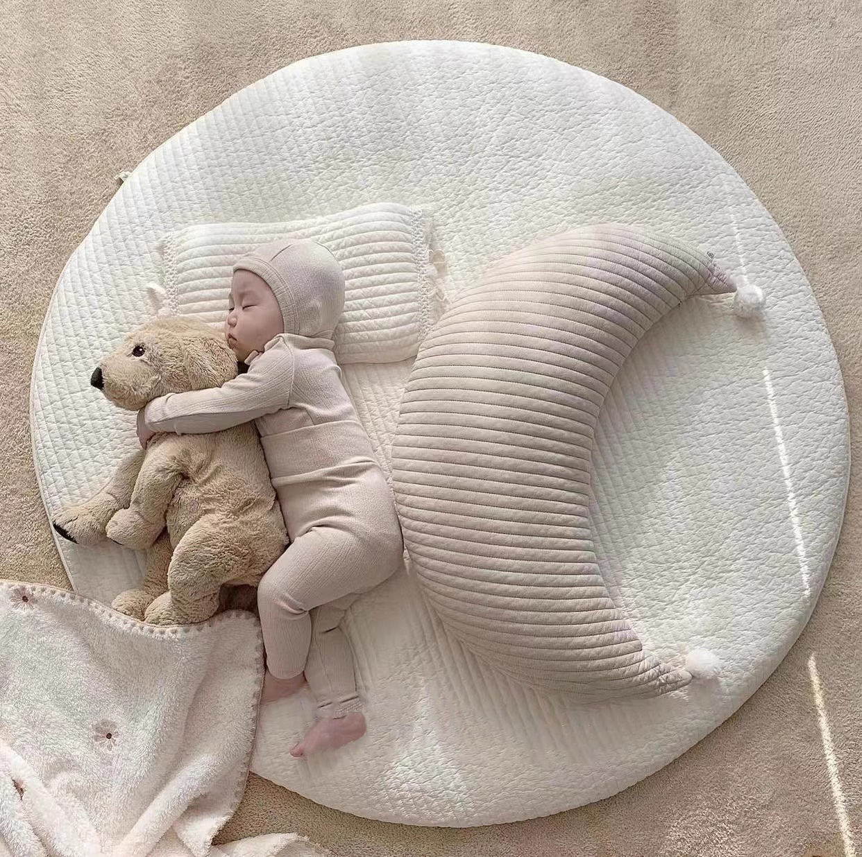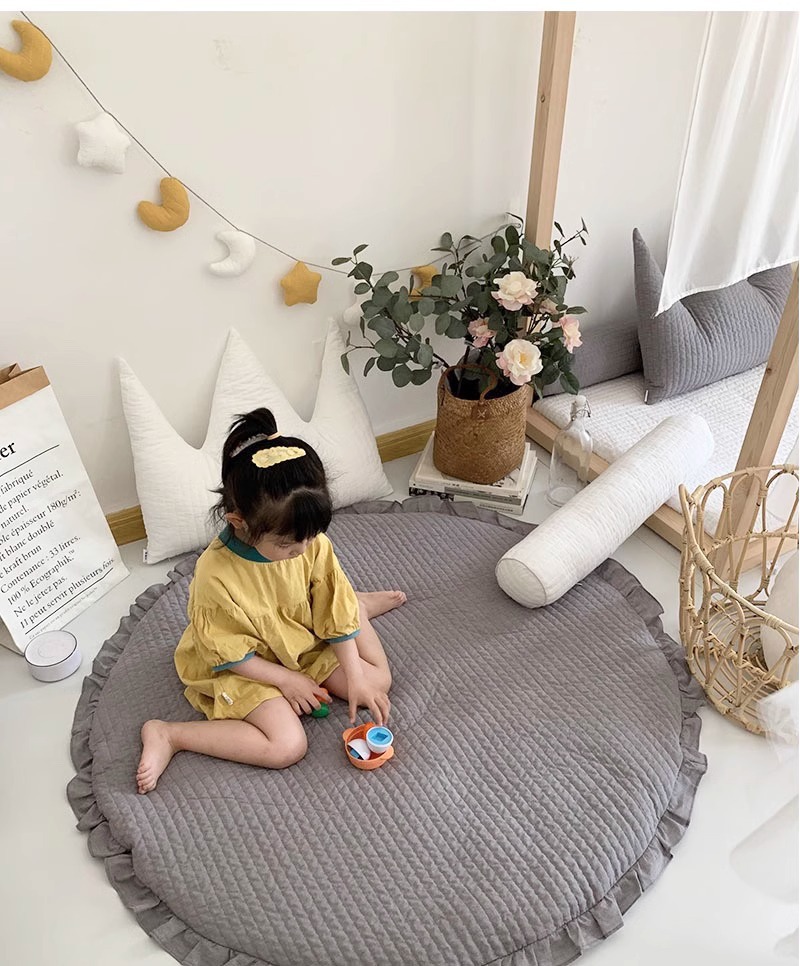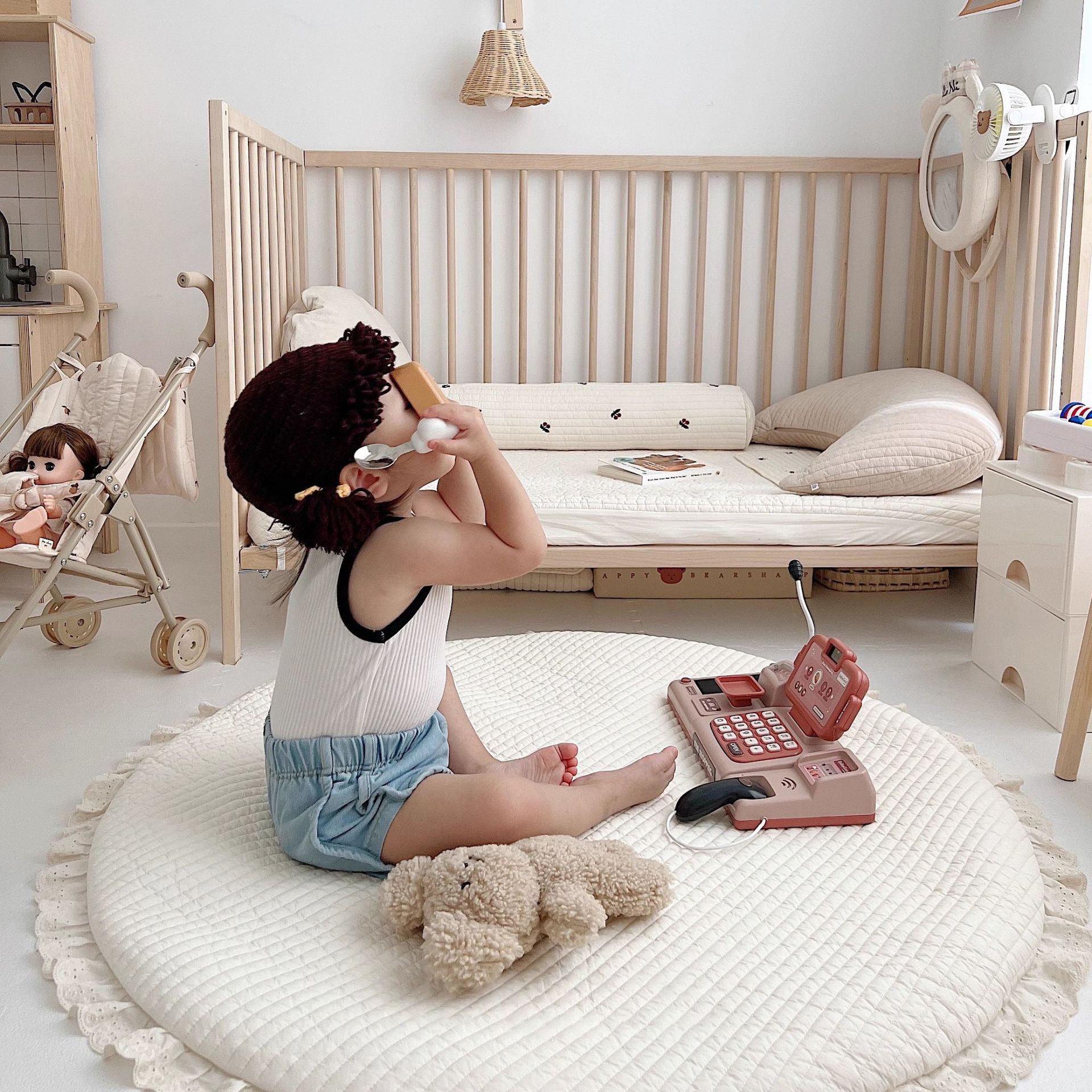 맞춤형 한국어 신생아 둥근 탈착식 및 세탁 가능한 바닥 매트 어린이 순면 퀼트 크롤링 매트 쿠션 라운드 매트