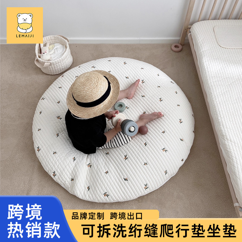 맞춤형 한국어 신생아 둥근 탈착식 및 세탁 가능한 바닥 매트 어린이 순면 퀼트 크롤링 매트 쿠션 라운드 매트스토어 가기