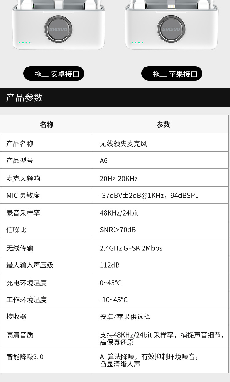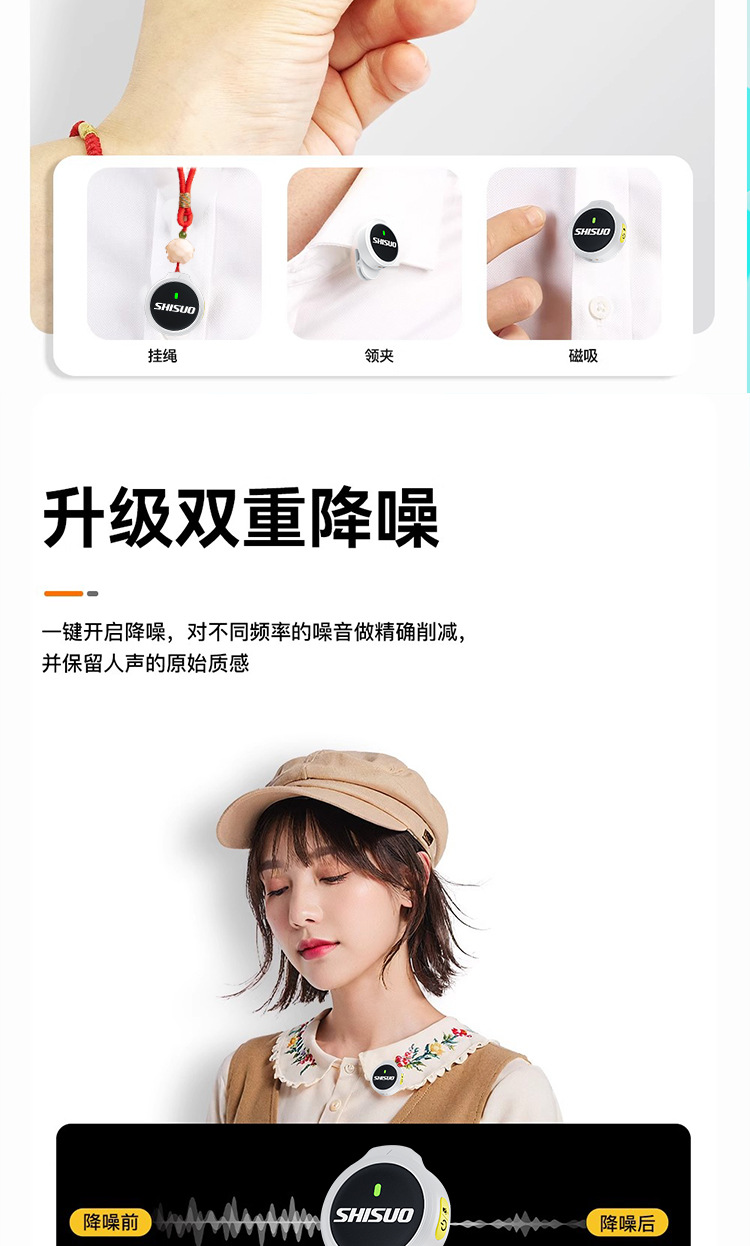 시솔링 클립형 마이크 무선 버튼형 라이브 방송 소음 감소 짧은 영상 녹음 마이크 클립온형 1대2 A6