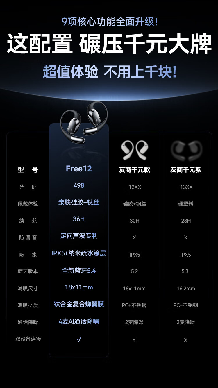 Li Lai 헤드셋 FREE12 새로운 링크형 블루투스 헤드셋 매달려 귀 형 개방형 공기 전도스토어 가기