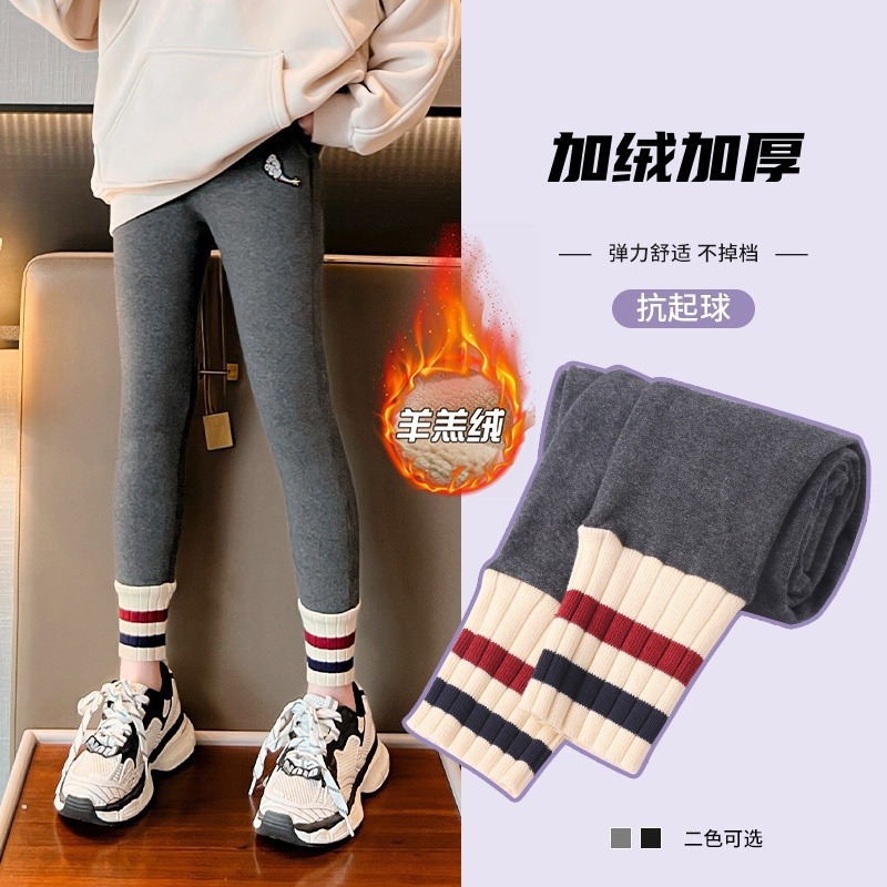 소녀 레깅스 가을 겨울 2024 새로운 어린이 기모 큰 어린이와 소녀를위한 따뜻한 바지 따뜻한 바지