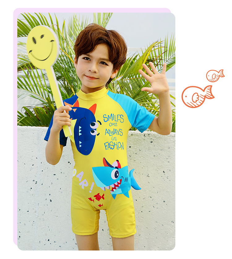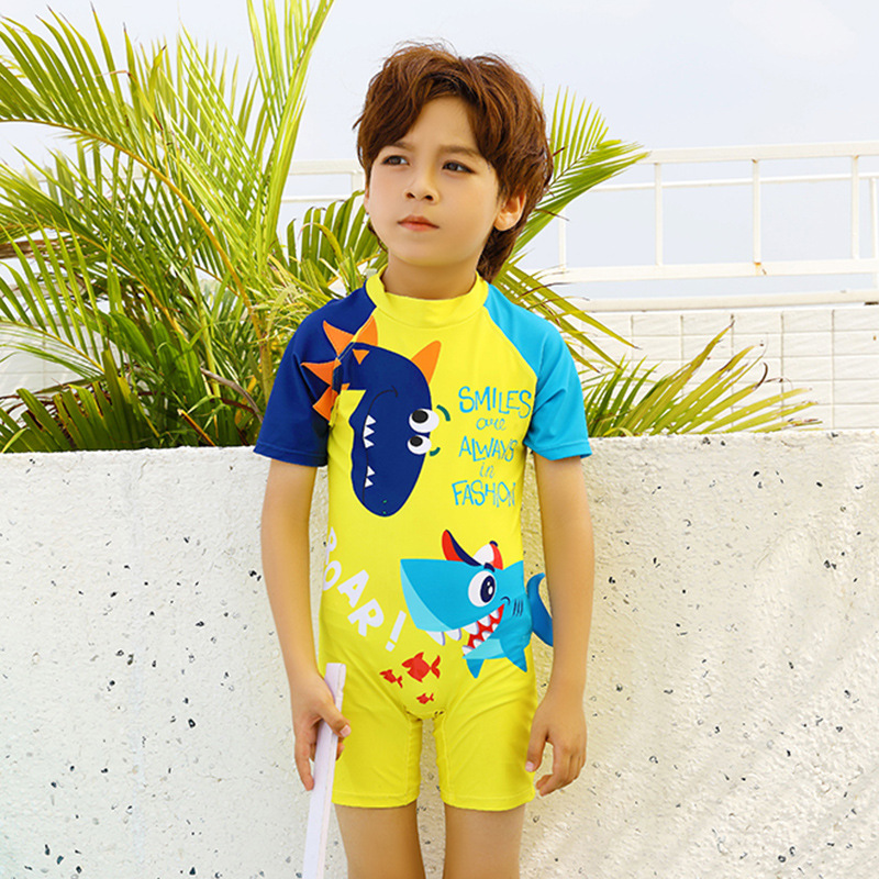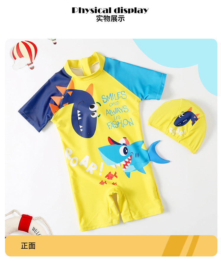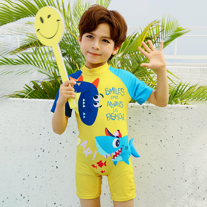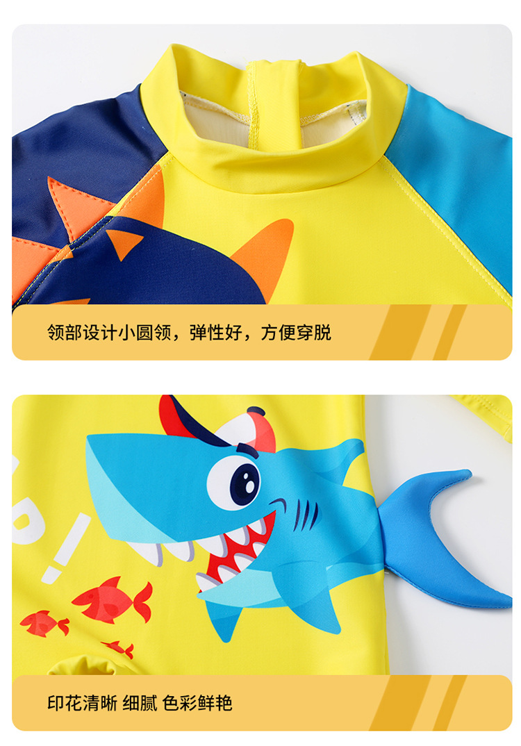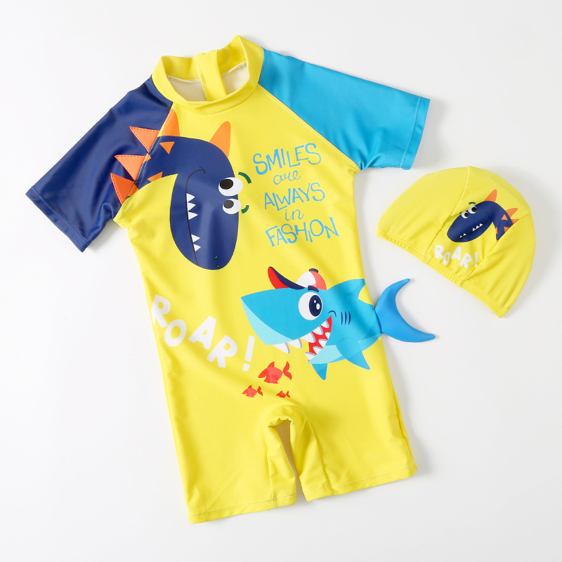 2024 새로운 귀여운 상어 한 조각 작은 중간 크기의 어린이 아기 소년 수영복 짧은 소매 해변 태양 보호 온천 수영복