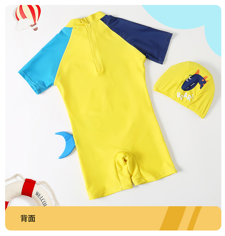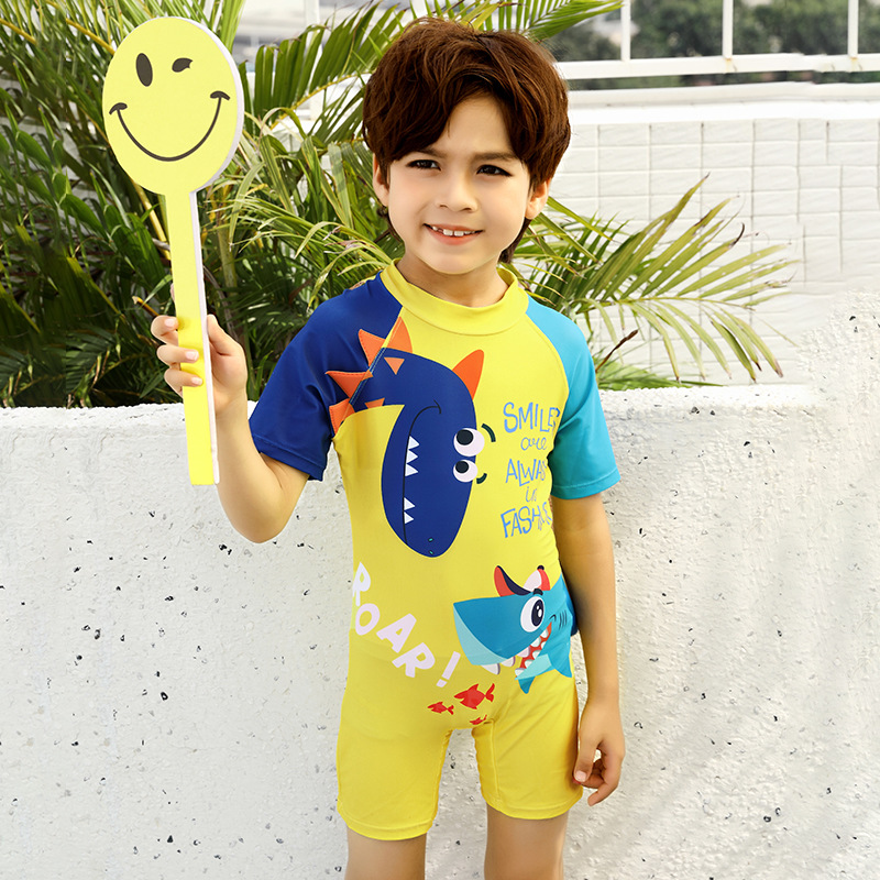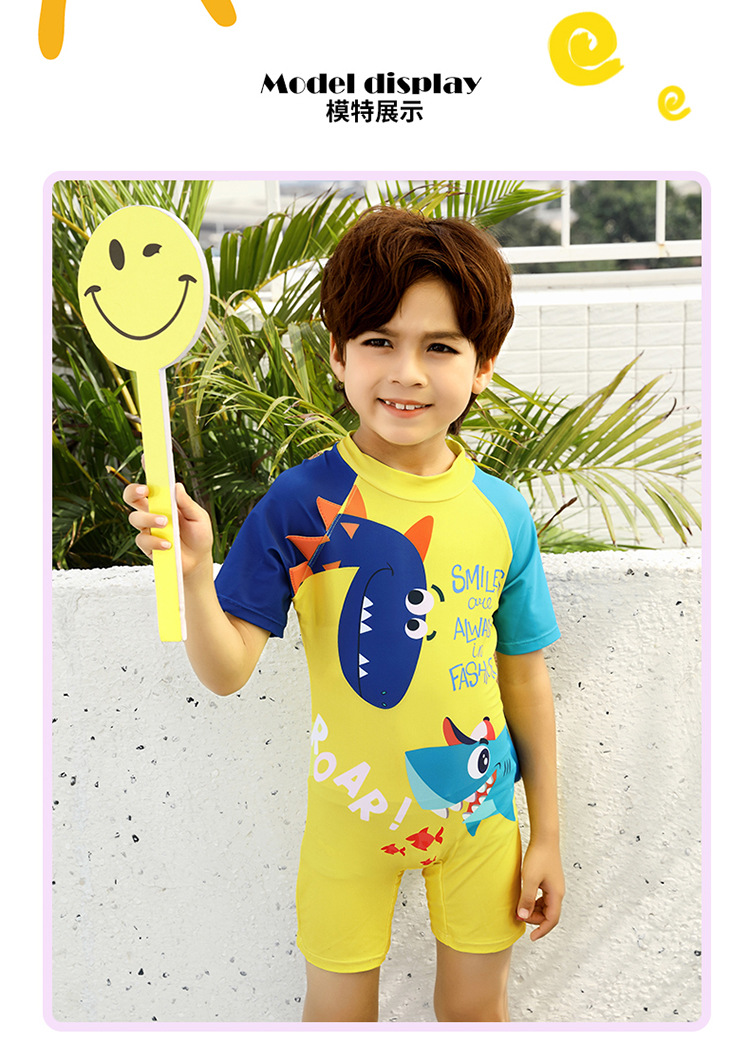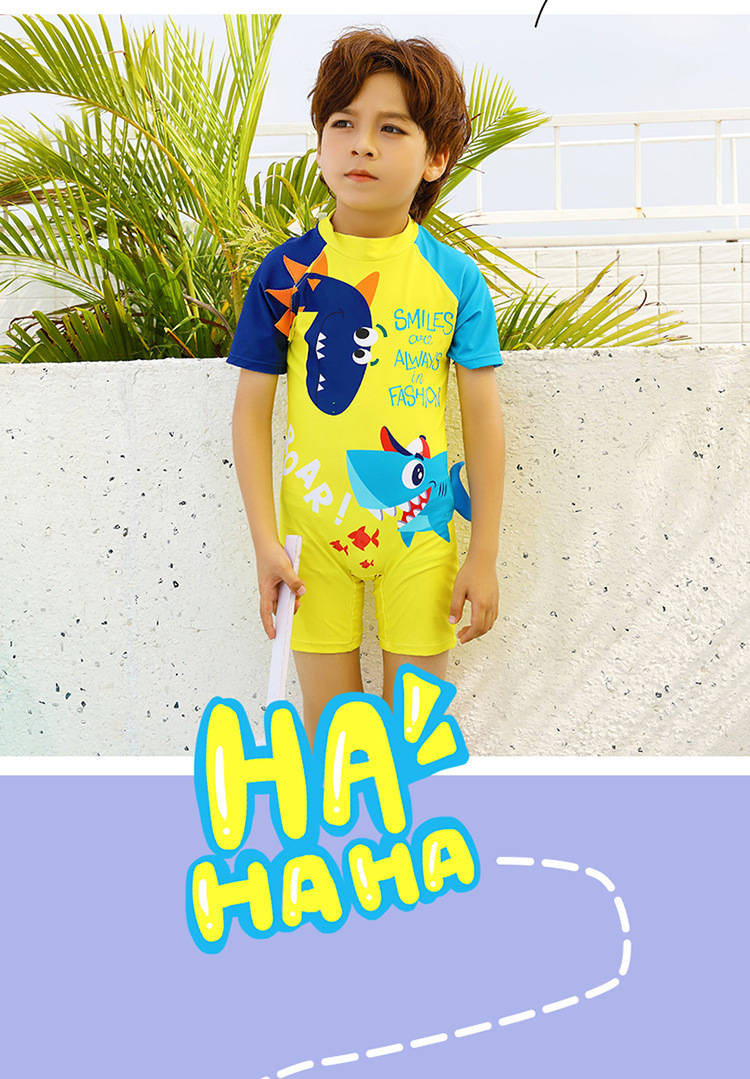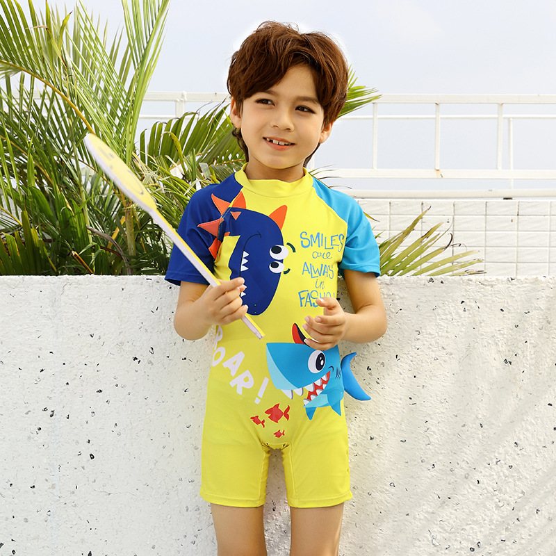 2024 새로운 귀여운 상어 한 조각 작은 중간 크기의 어린이 아기 소년 수영복 짧은 소매 해변 태양 보호 온천 수영복