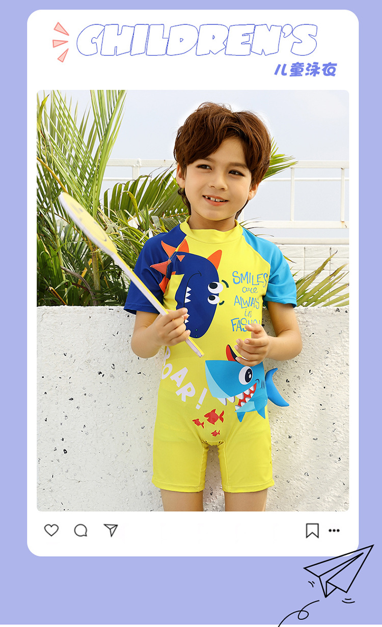 2024 새로운 귀여운 상어 한 조각 작은 중간 크기의 어린이 아기 소년 수영복 짧은 소매 해변 태양 보호 온천 수영복스토어 가기