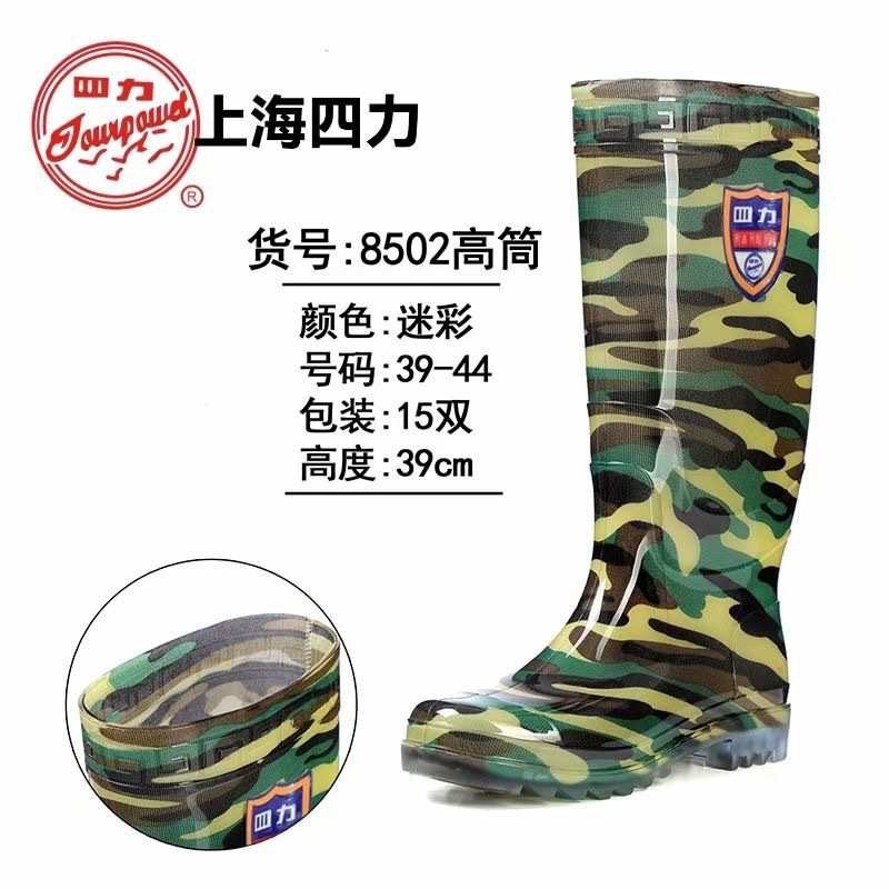 4 개의 전원 8502 위장 비 신발 남성 물 신발 두꺼운 긴 배럴 비 부츠 높은 배럴 미끄럼 고무 신발 방수 노동 보호 신발