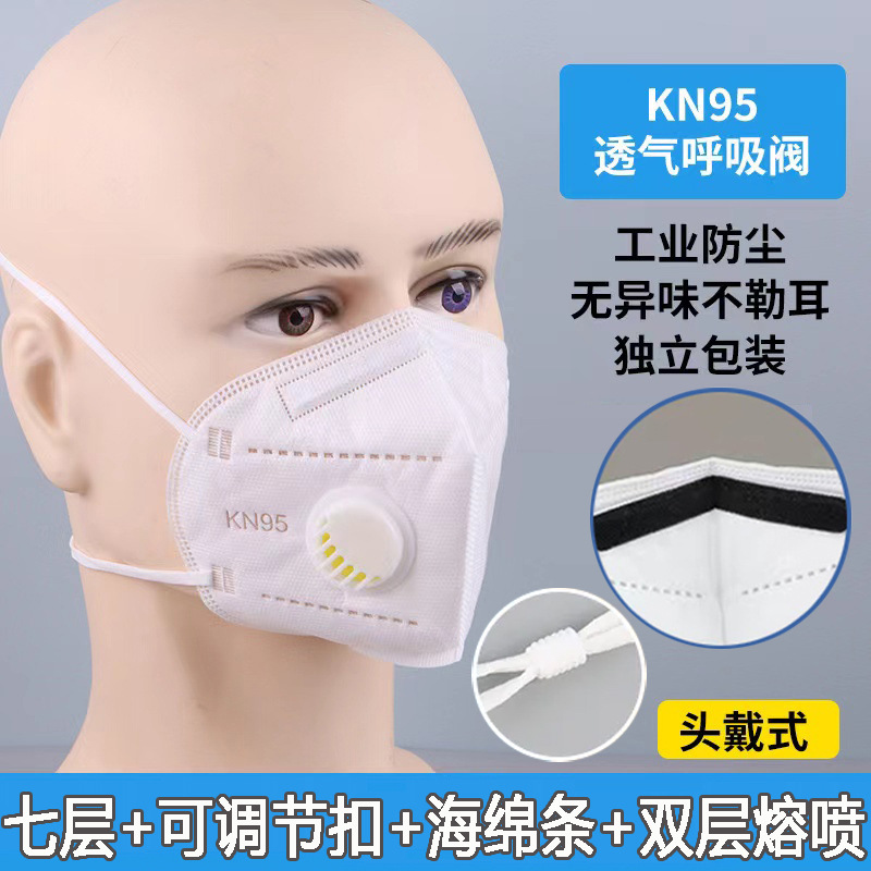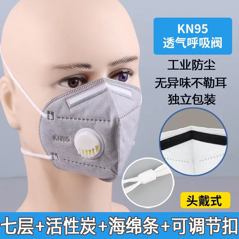 Kn95 7 층 먼지 마스크 안티 산업 먼지 포름 알데히드 활성탄 호흡 밸브 헤드 장착 독립 포장