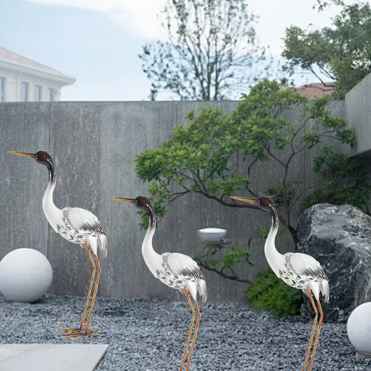 백로 붉은 꼭대기 크레인 유리 섬유 강화 플라스틱 조각 바위 조경 부동산 빌라 커뮤니티 안뜰 수영장 장식품