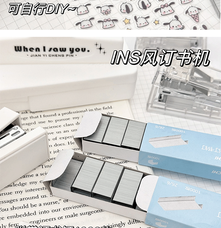 Ins 스타일 미니 DIY 투명 스테이플러 세트 만화 스몰 사이즈 스테이플러 세트 학생 다기능 핸드 헬드스토어 가기