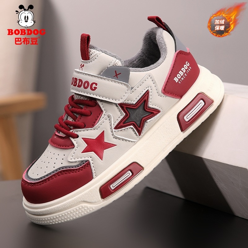 Babu Bean 어린이 신발 소년 운동화 가을과 겨울 가죽 방수 중대형 어린이 캐주얼 신발 기모 따뜻한 어린이 운동화