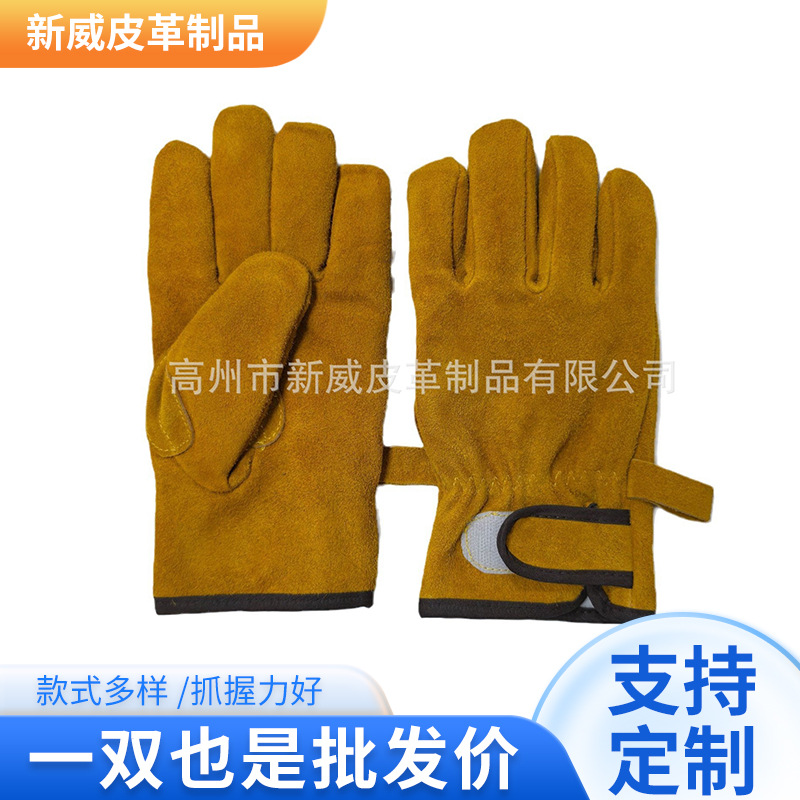 소가죽 2겹+벨크로 테이프 운전용/용접용 내마모성 단열 작업 보호 장갑, 야외 작업용 단열 보호 장갑