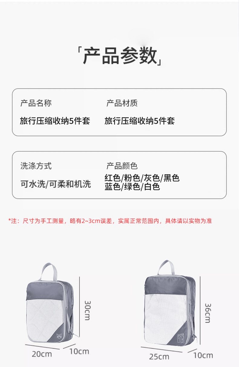 다목적 휴대용 야외 여행 수납 5종 세트 디지털 의류 및 신발 포장 및 정리 수하물 여행 가방