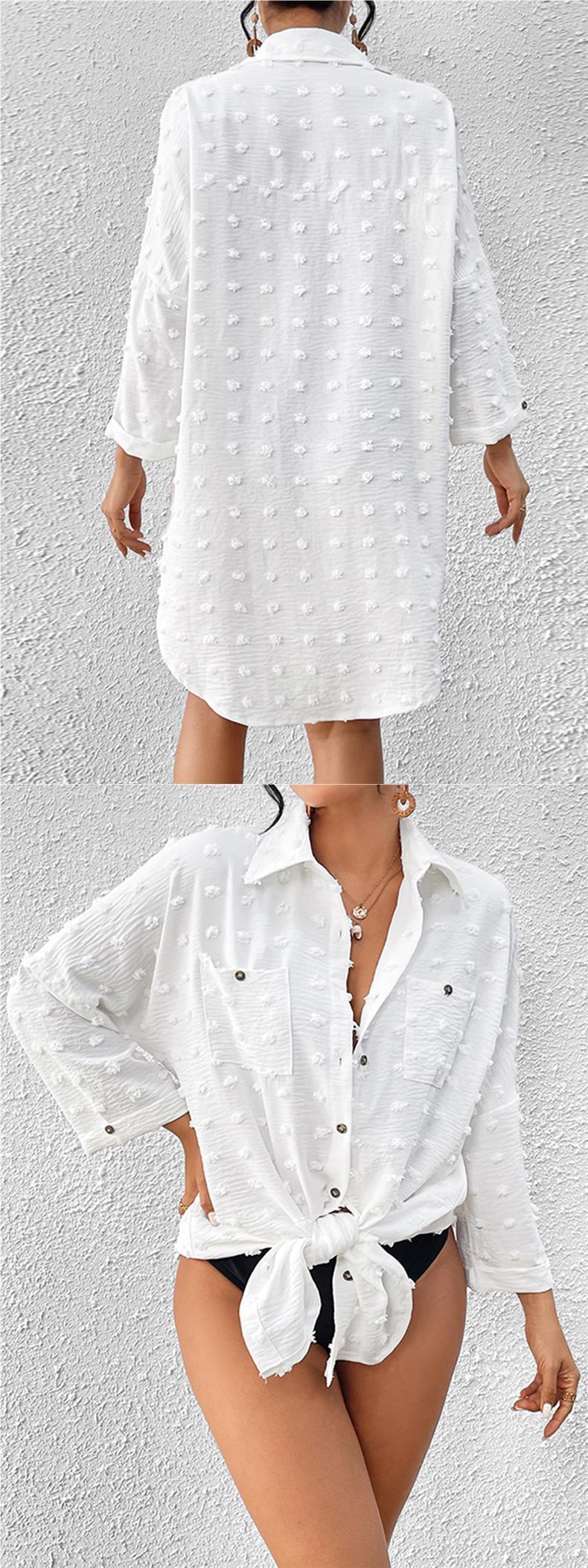 2024 아마존 독립 역 유럽과 미국의 새로운 쉬폰 자카드 큰 머리 공 느슨한 캐주얼 카디건 셔츠 여성 의류스토어 가기