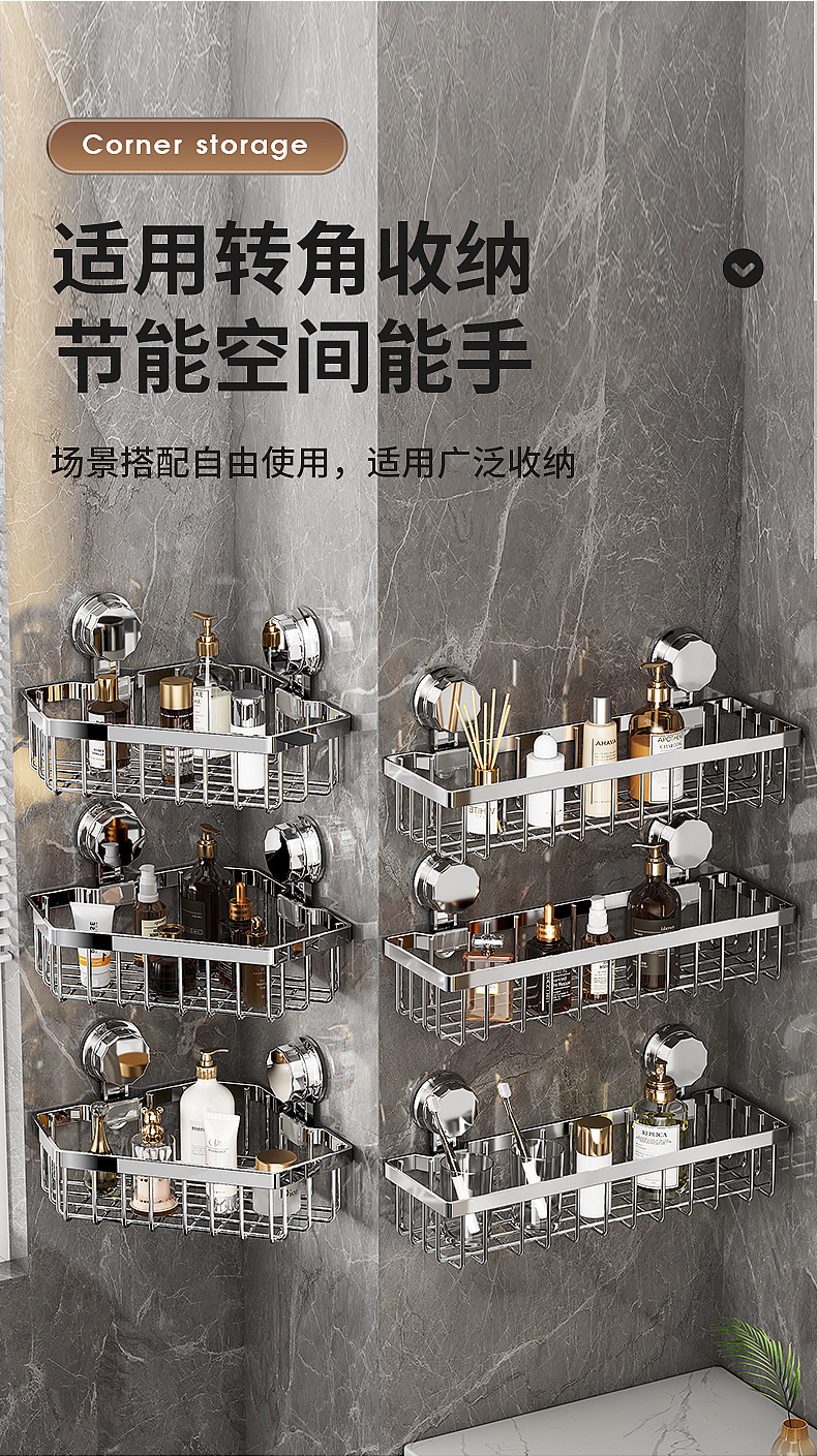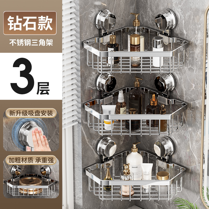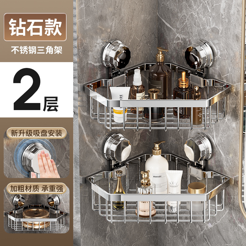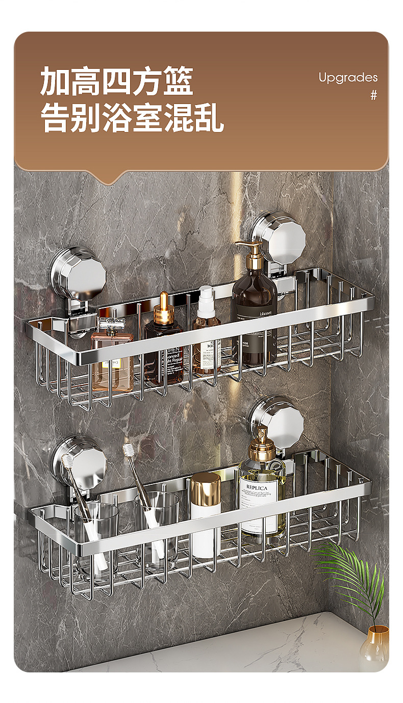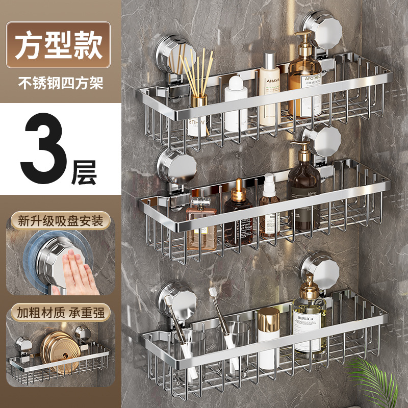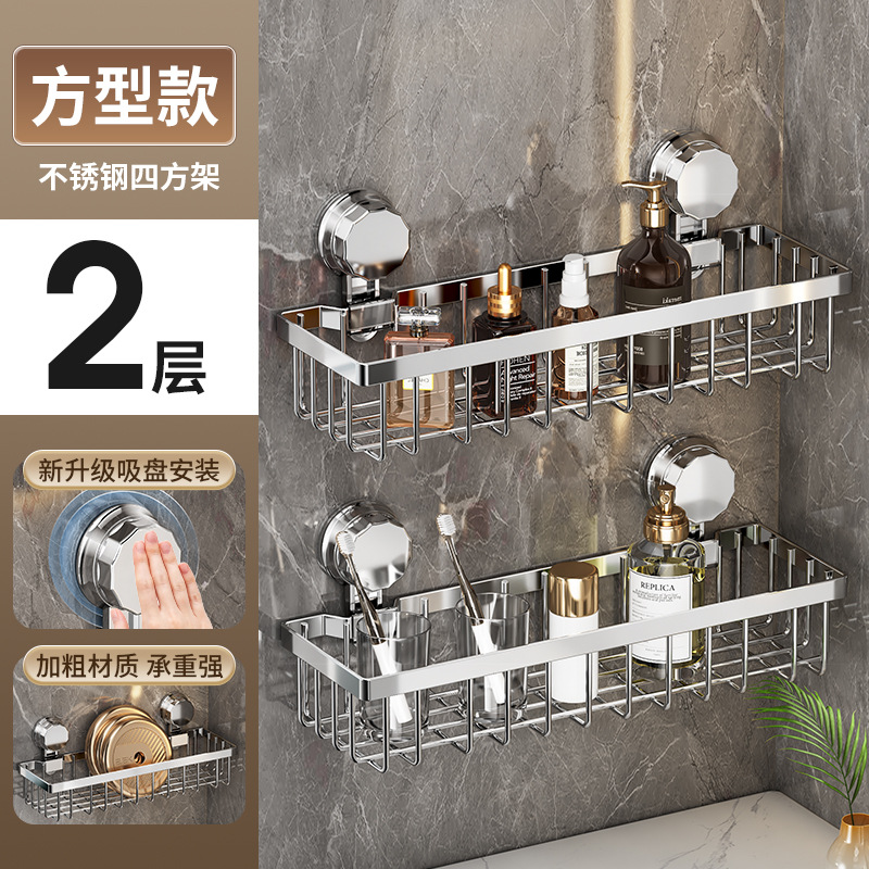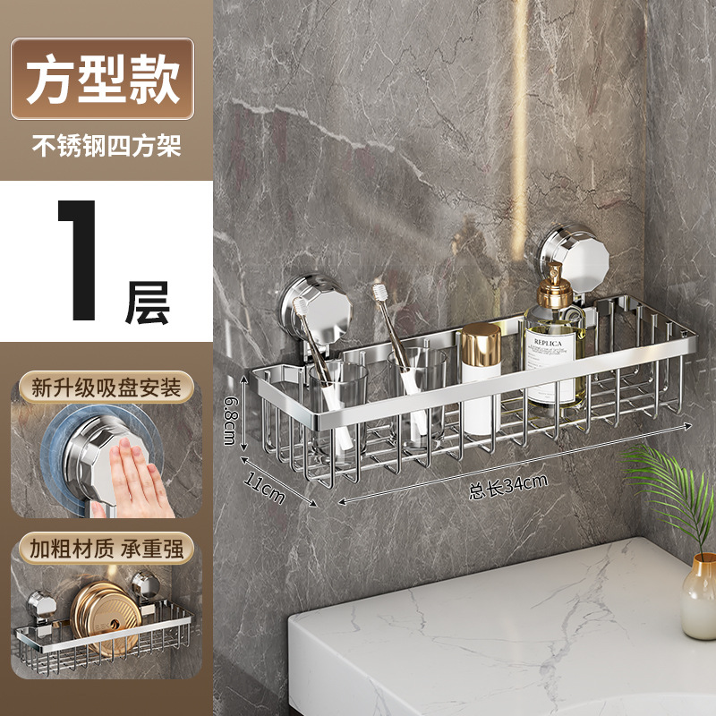 가벼운 욕실 화장실 랙 스테인레스 스틸 비 펀치 화장실 벽 저장 바구니 벽걸이 흡입 컵