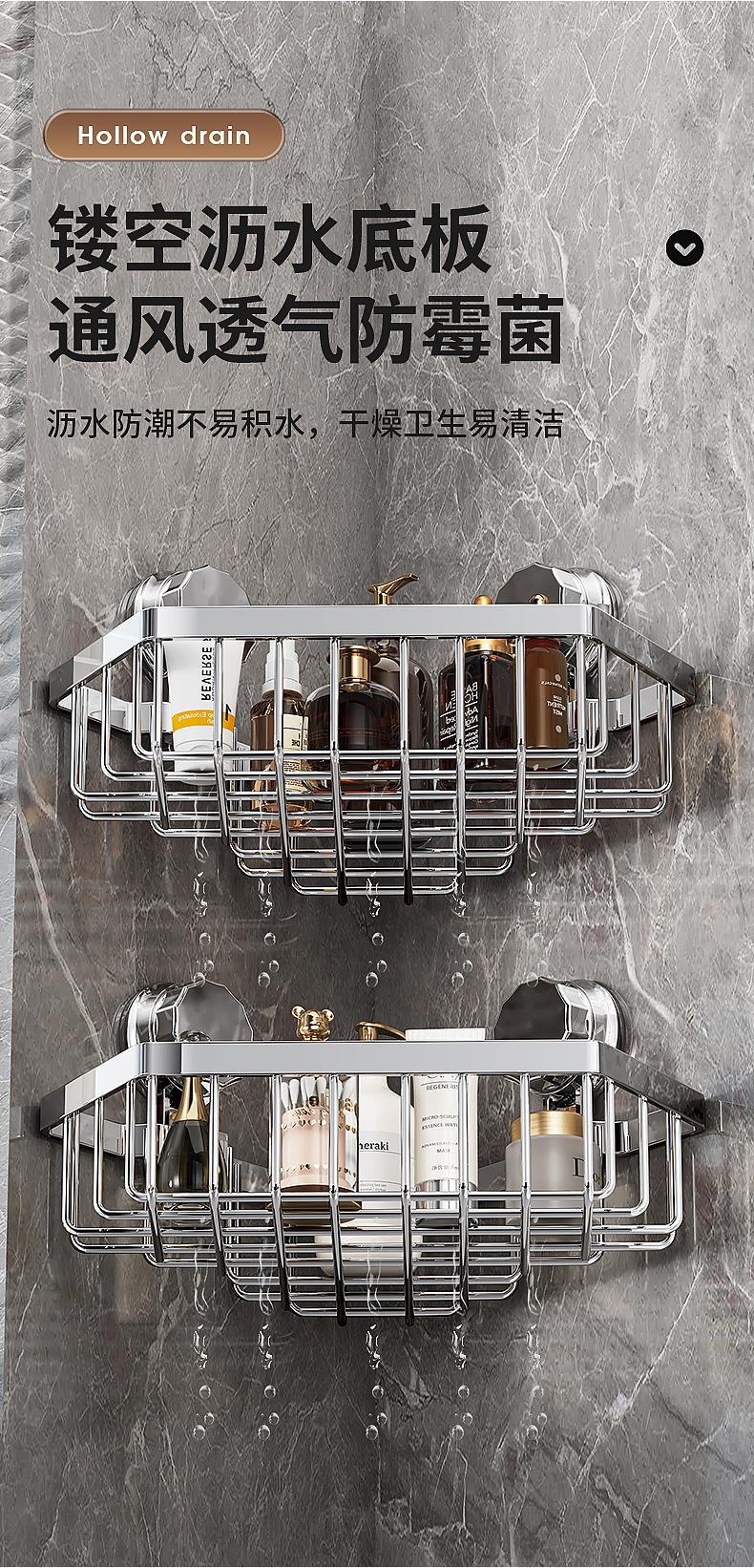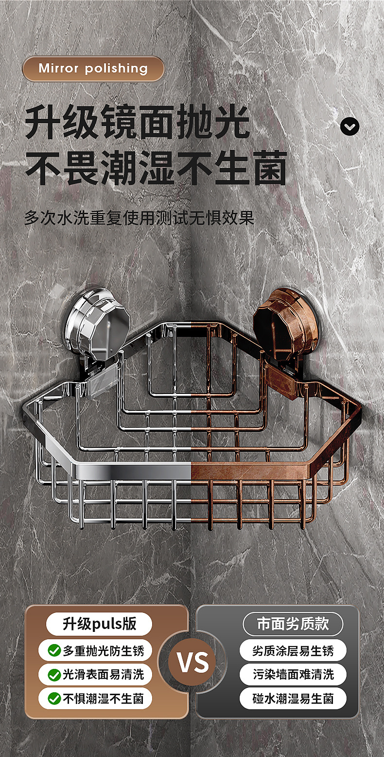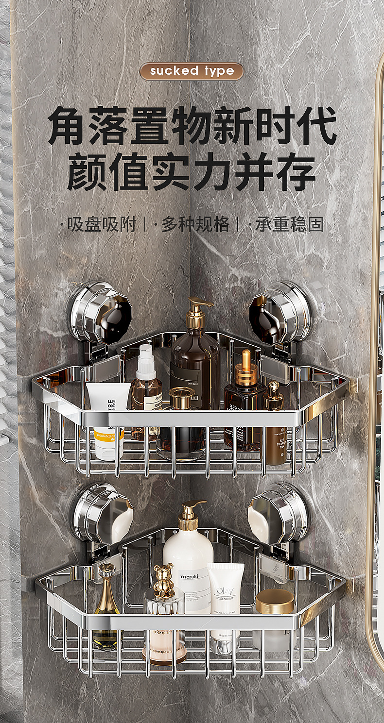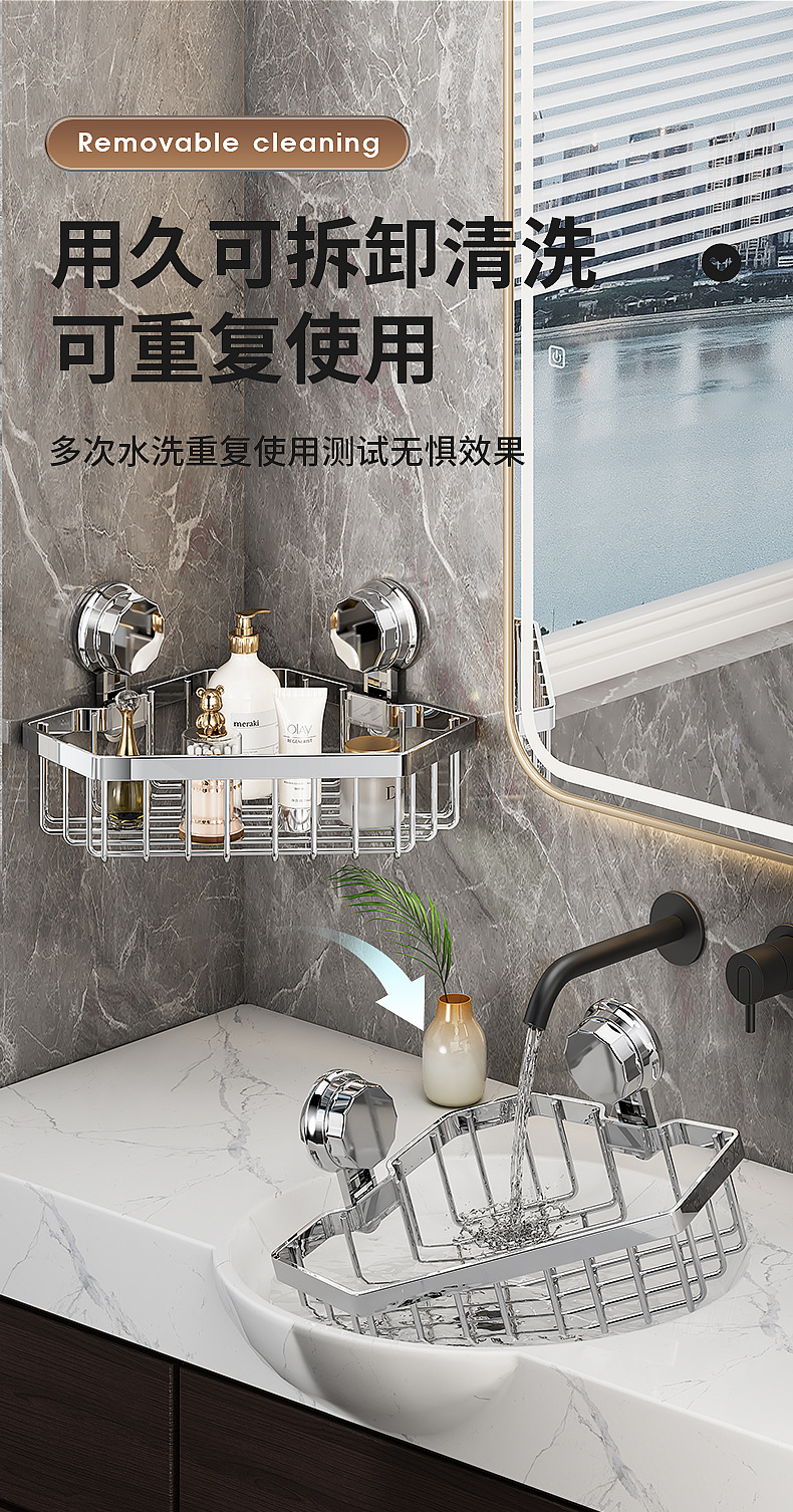 가벼운 욕실 화장실 랙 스테인레스 스틸 비 펀치 화장실 벽 저장 바구니 벽걸이 흡입 컵