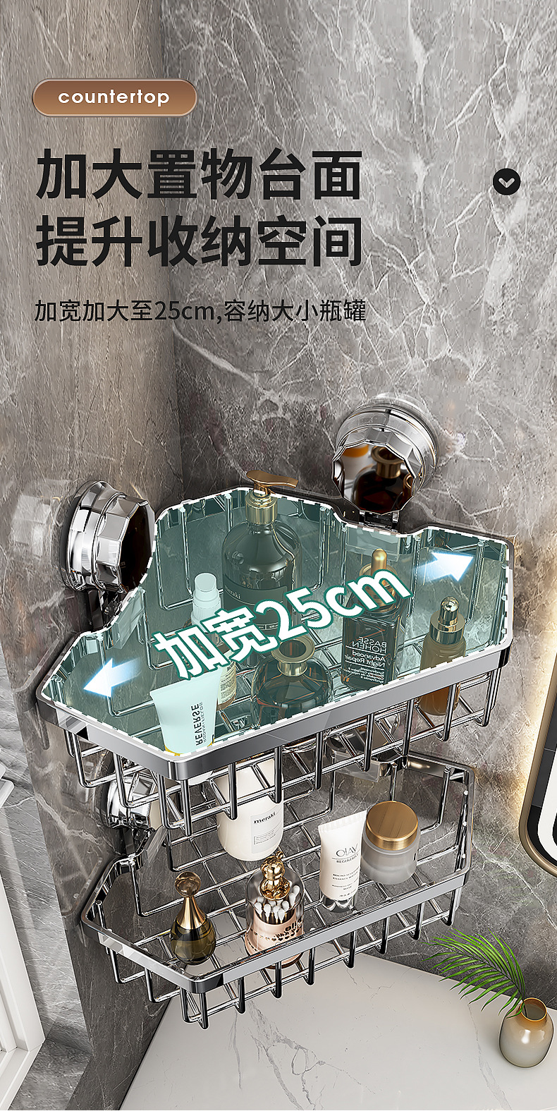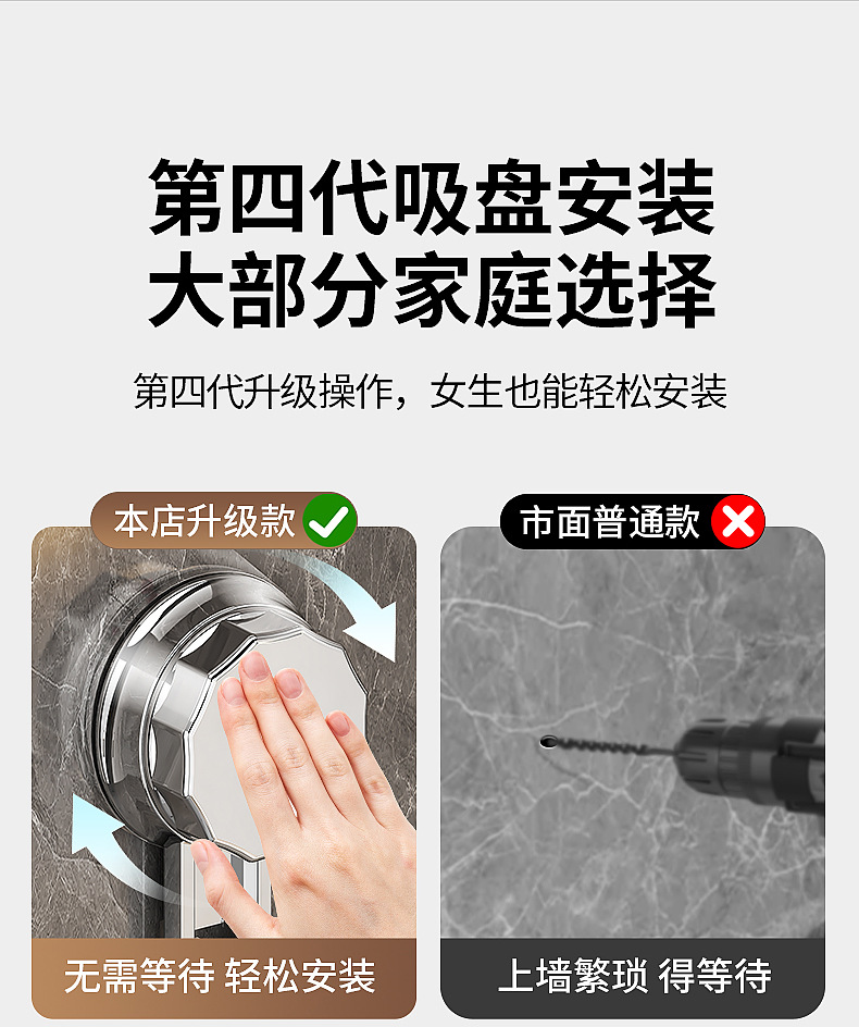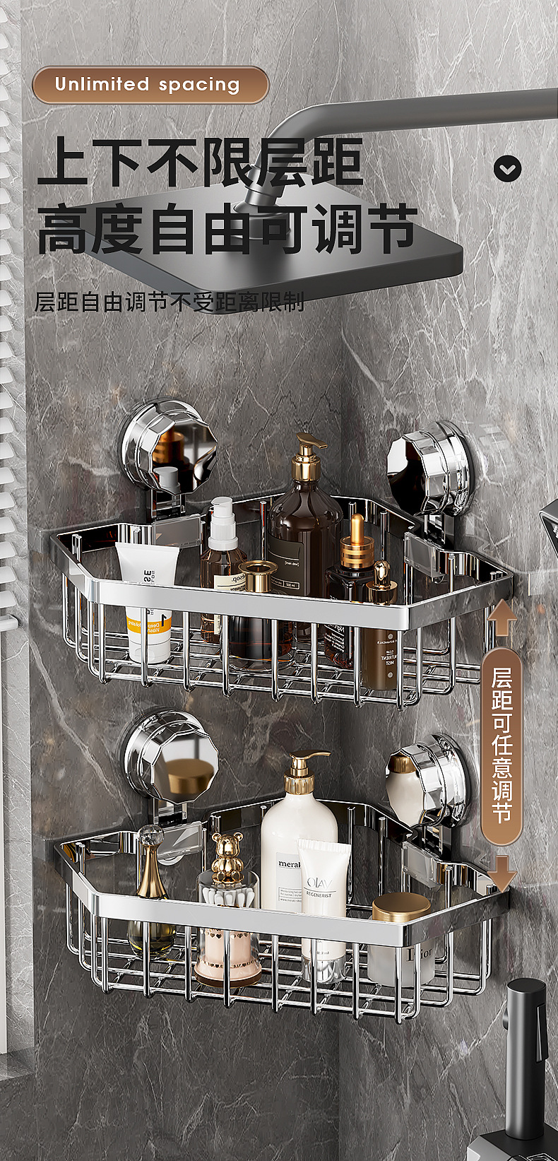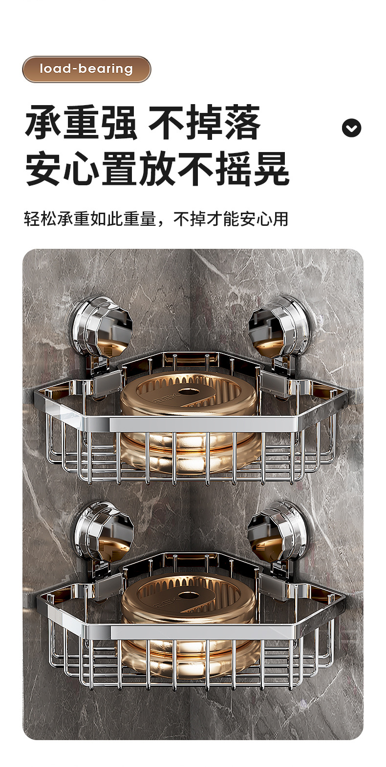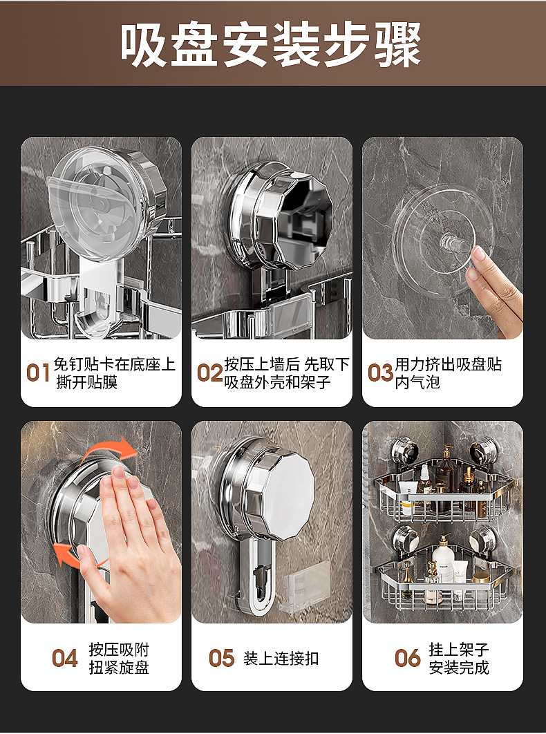 가벼운 욕실 화장실 랙 스테인레스 스틸 비 펀치 화장실 벽 저장 바구니 벽걸이 흡입 컵