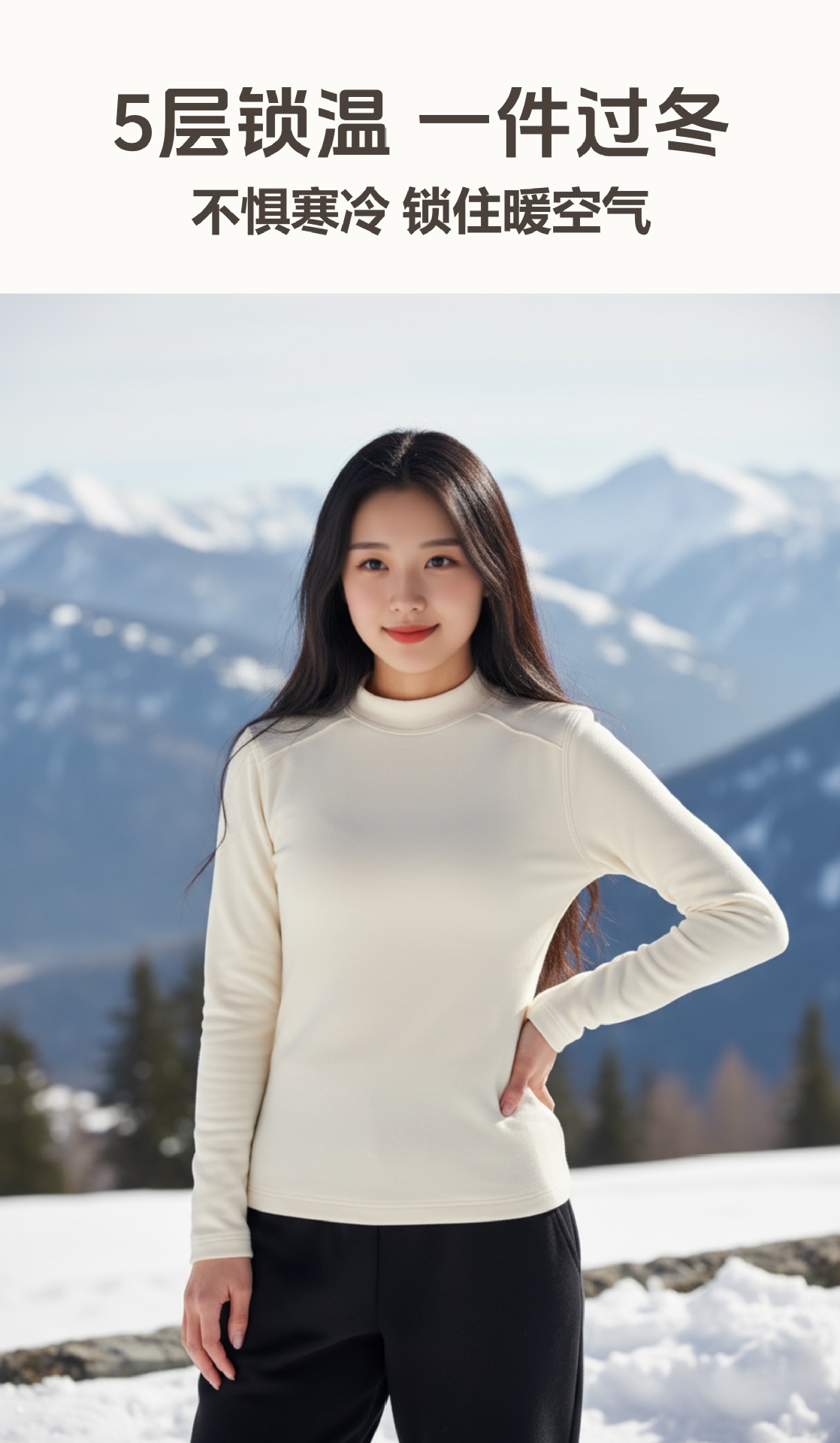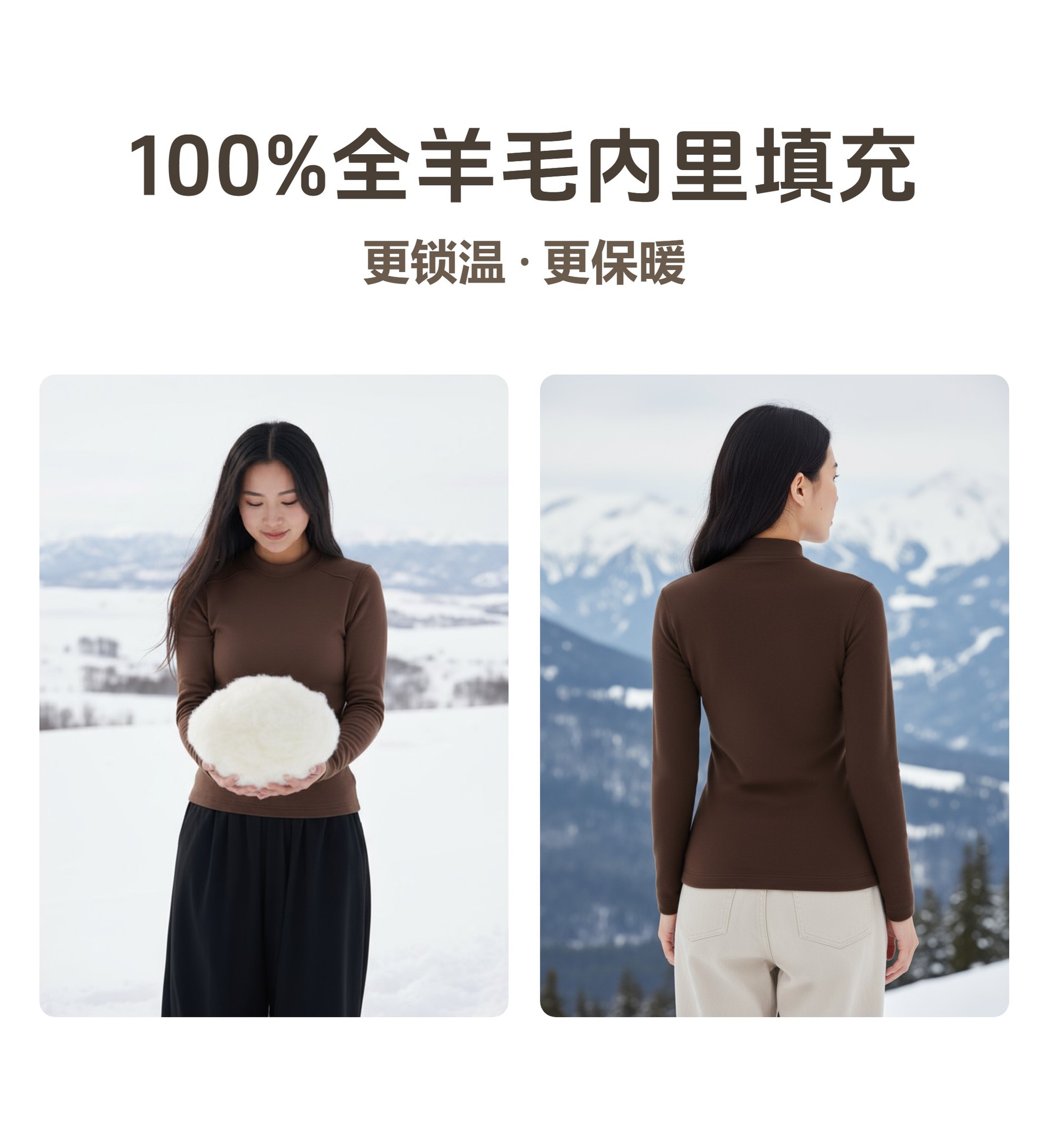 인기 겨울 울 플러스 벨벳 이너웨어 단색 보온 긴팔 상의 여성용 두꺼운 이너웨어 외출복으로도 착용 가능
