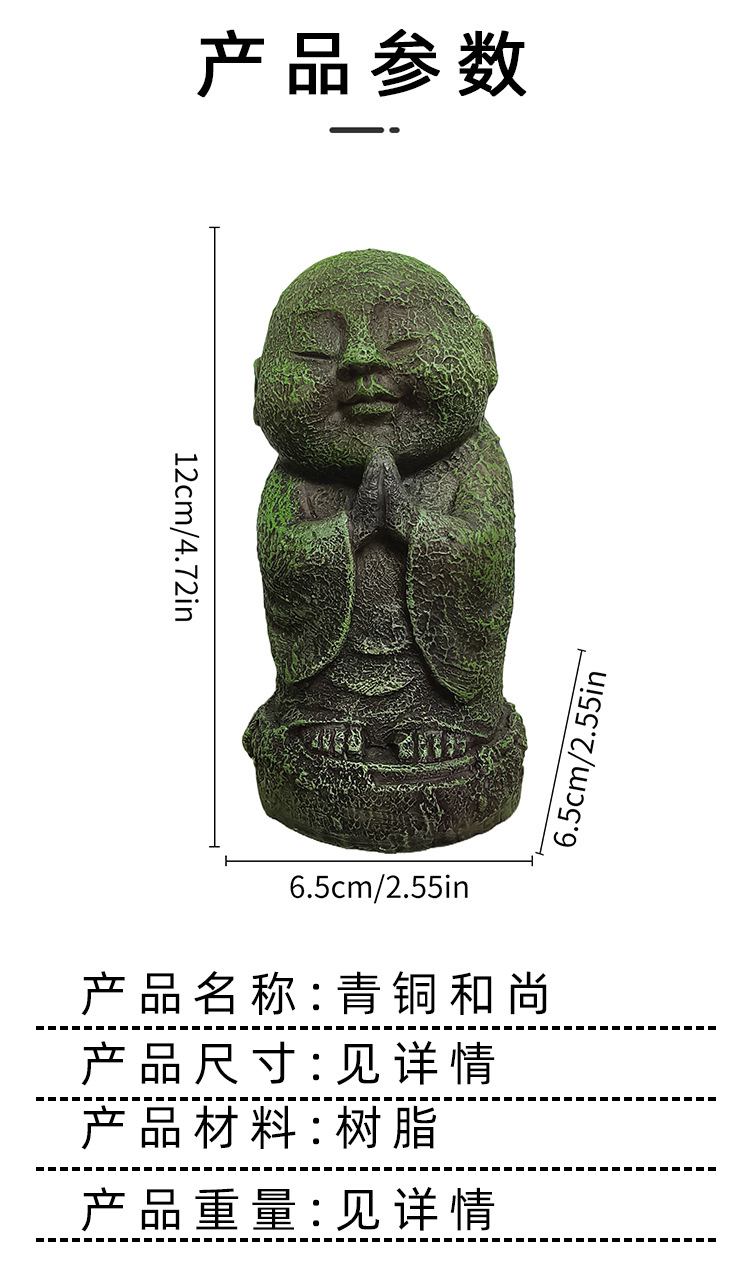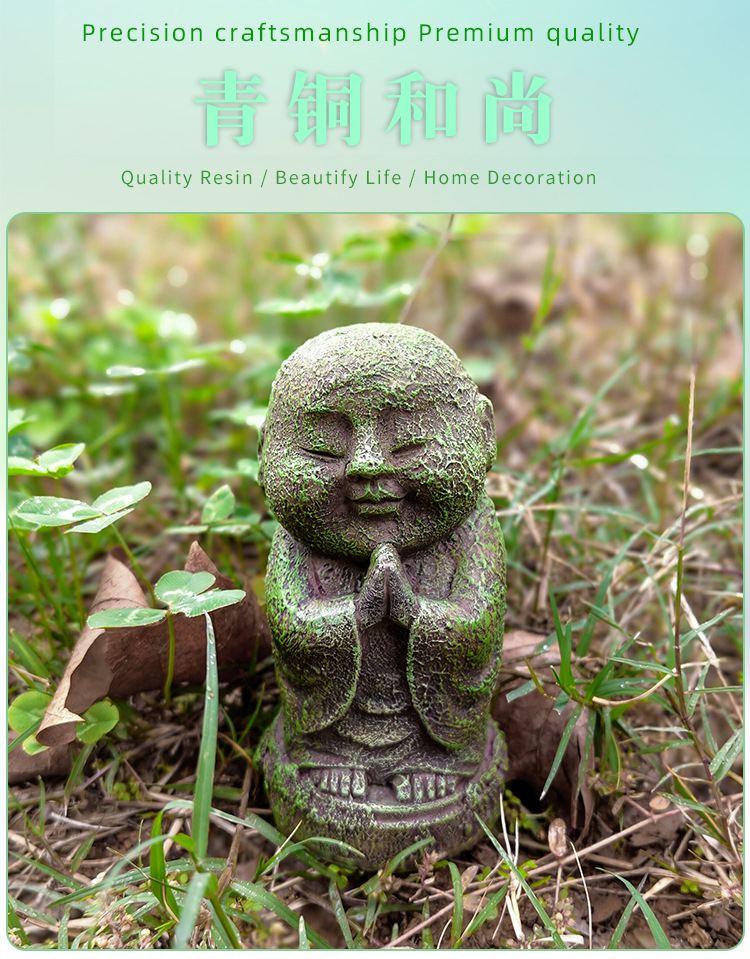 국경 간 안뜰 장식 장신구 선 녹색 머리 스님 홈 오피스 데스크탑 장식품 수지 어항 조경 장식