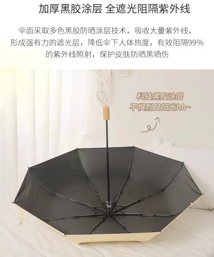 안티 자외선 3 배 수동 핸들 우산 도매 단색 검은 고무 선 스크린 및 비 이중 사용 태양 우산 접이식 우산스토어 가기