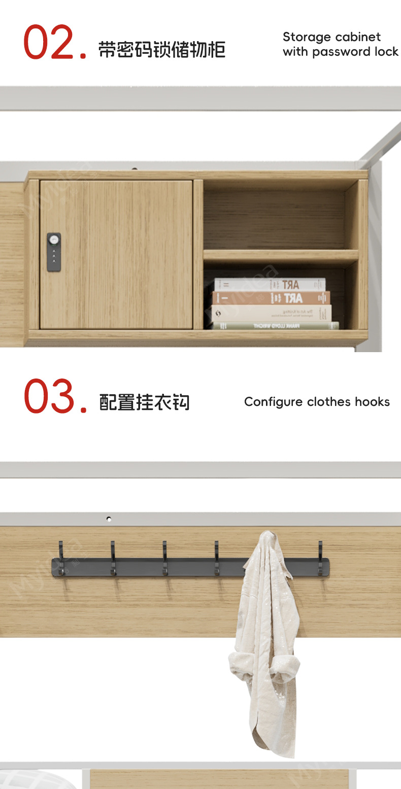 • 코드락 사물함을 갖춘 높은 이층침대