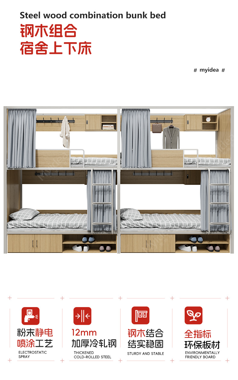 이층 침대, 학생용 아파트 침대, 높낮이가 다른 침대, 상하 폭이 동일한 철제 침대, 더블 침대, 두꺼운 강철 및 목재 침대, 견고한 침대