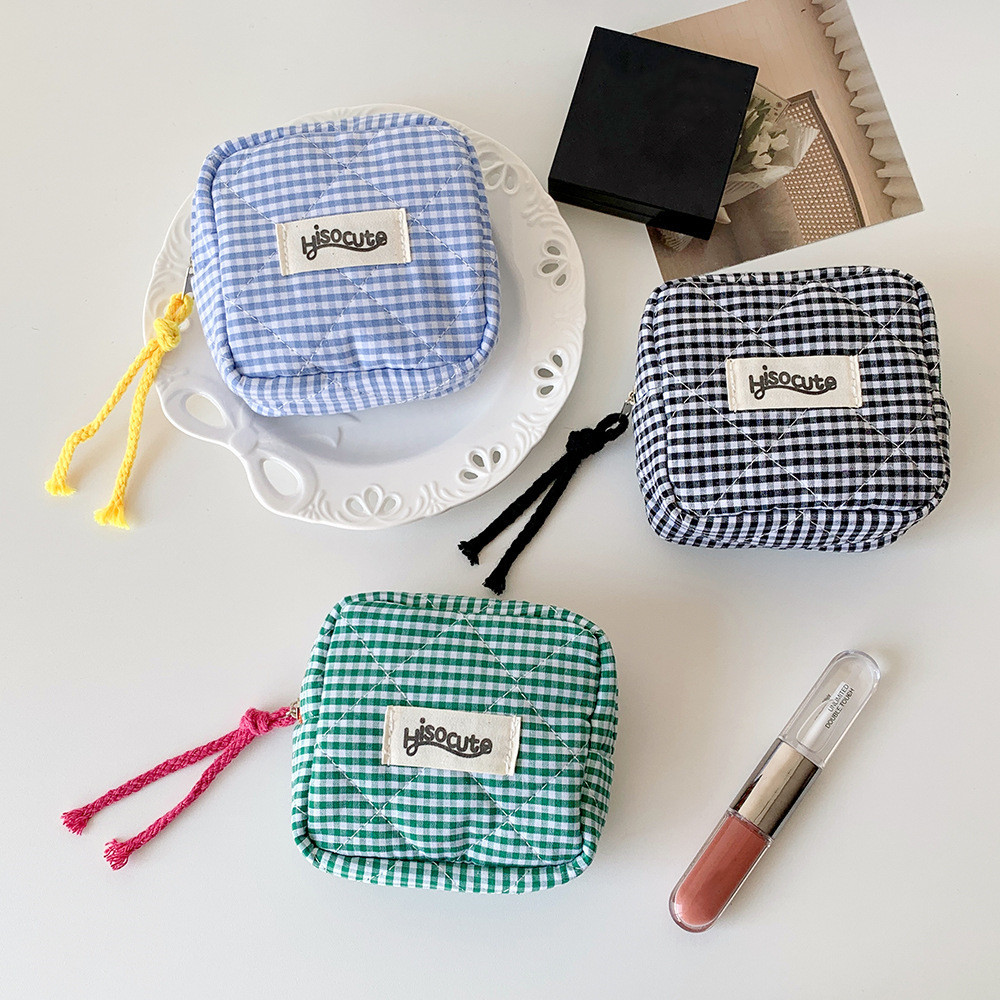 韩版可爱迷你少女格纹方形口红包带隔层便携小号化妆包零钱收纳包 产品尺寸:11*11.5*4.5