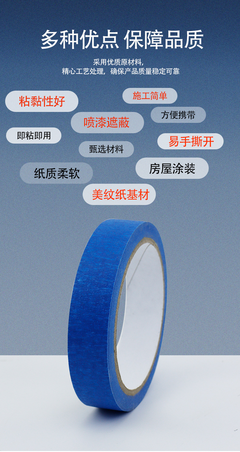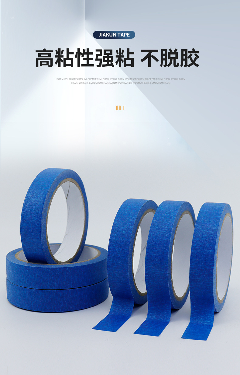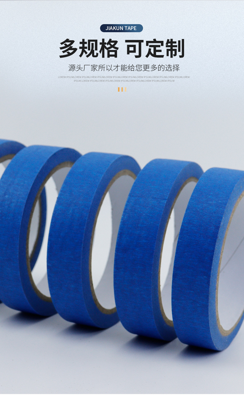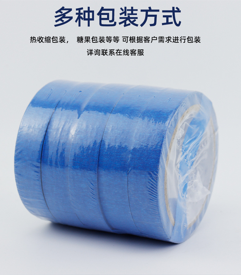 블루 마스킹 종이 테이프 도매는 접착제 고온 저항하는 증기 예술 유화 접착 종이 마스킹 장식 페인트 보호를 남기지 않습니다.스토어 가기