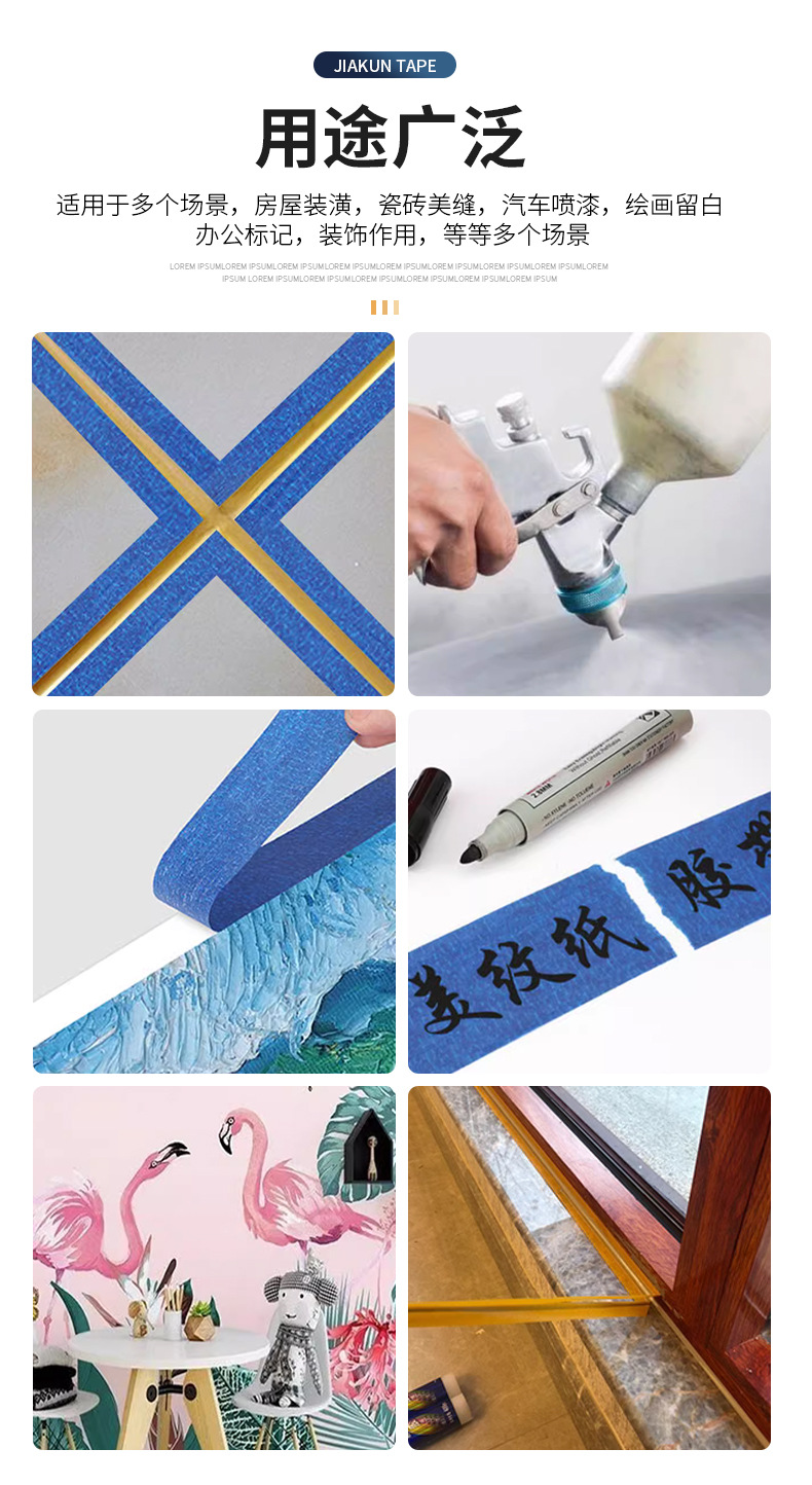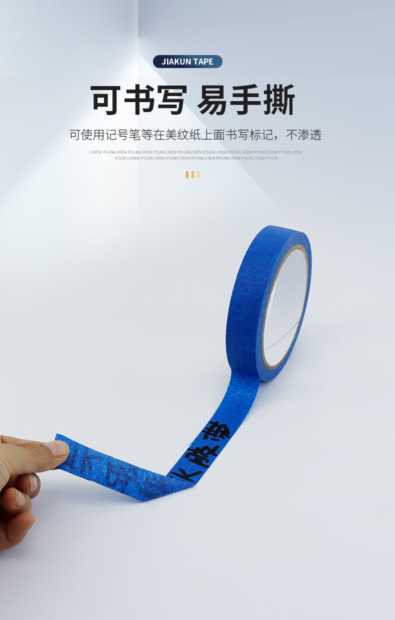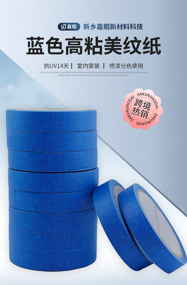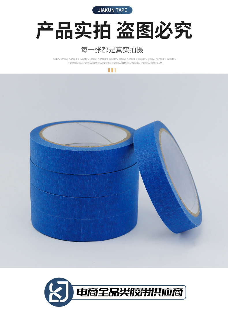 블루 마스킹 종이 테이프 도매는 접착제 고온 저항하는 증기 예술 유화 접착 종이 마스킹 장식 페인트 보호를 남기지 않습니다.스토어 가기