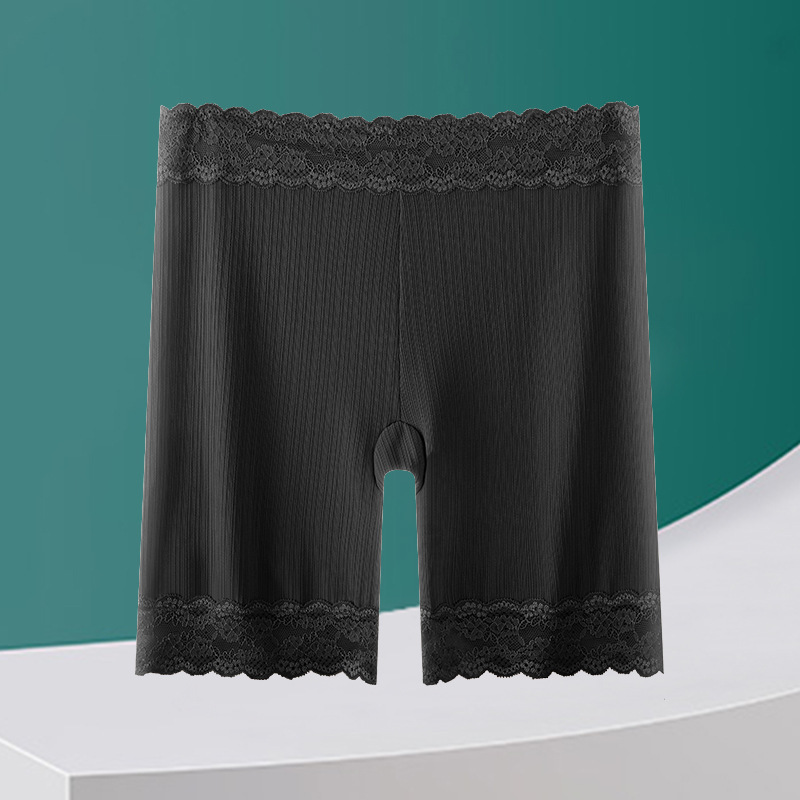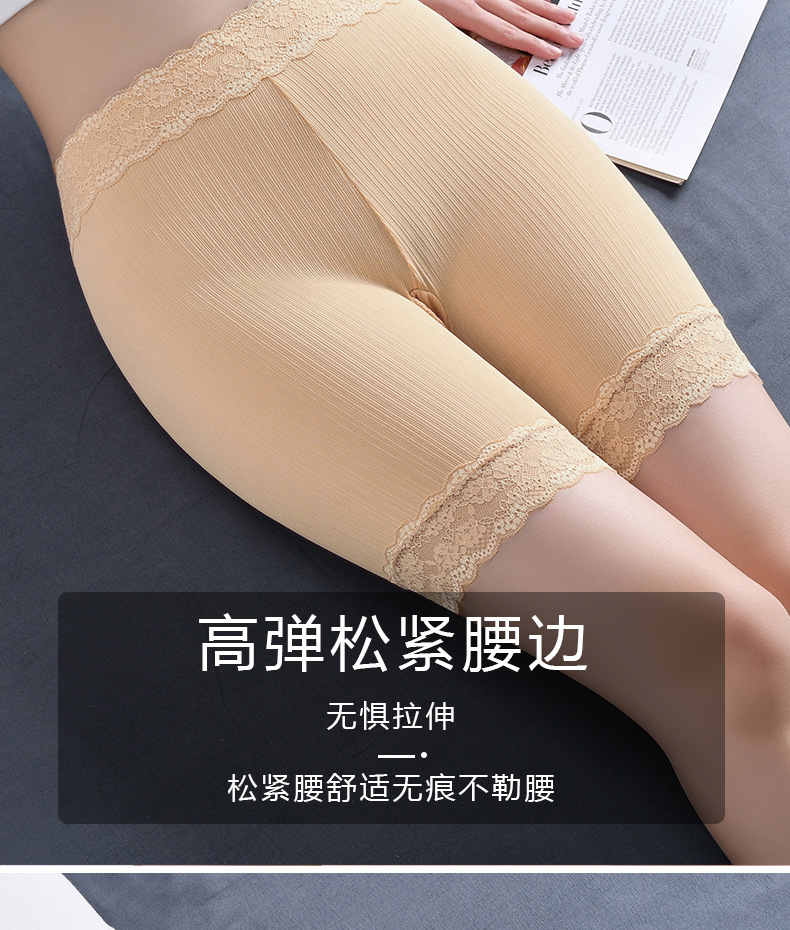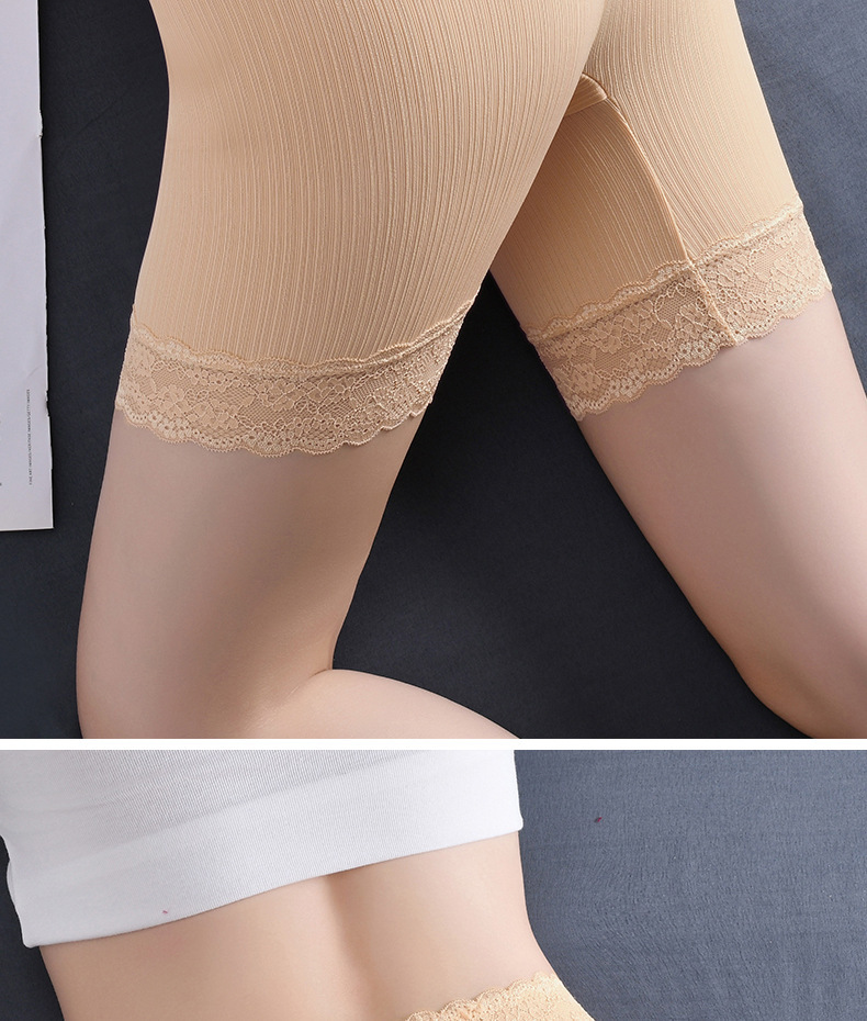 플러스 사이즈 플러스 뚱뚱한 버전 여성의 5 점 안전 바지 높은 허리 복부 투킹 순수한 면 통기성 코튼 크로트 레깅스 레이스 엣지 여름