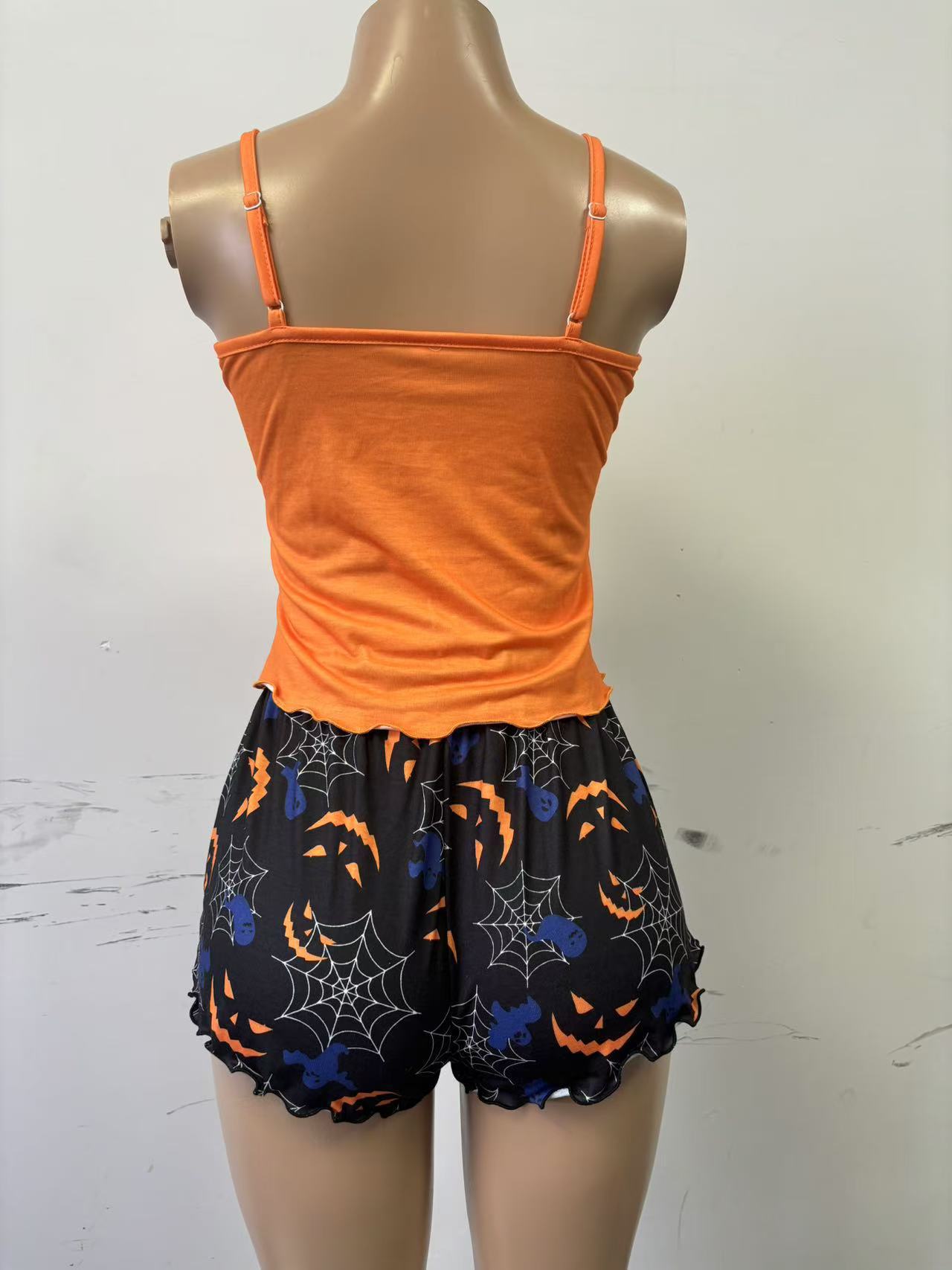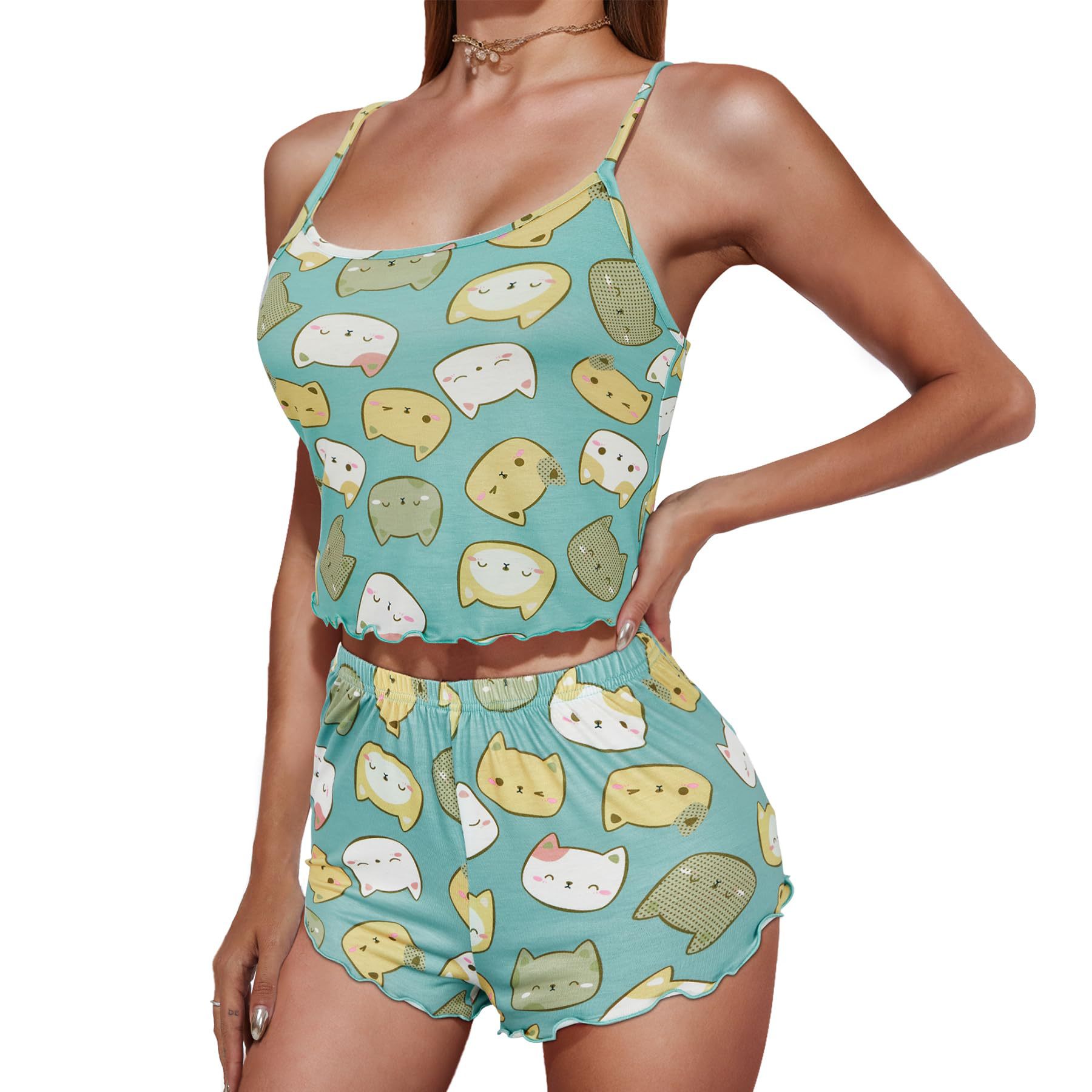 2024 여름 새로운 국경 유럽 및 미국 대외 무역 인쇄 슬링 반바지 슬림 핏 통기성 홈 의류 세트 여성