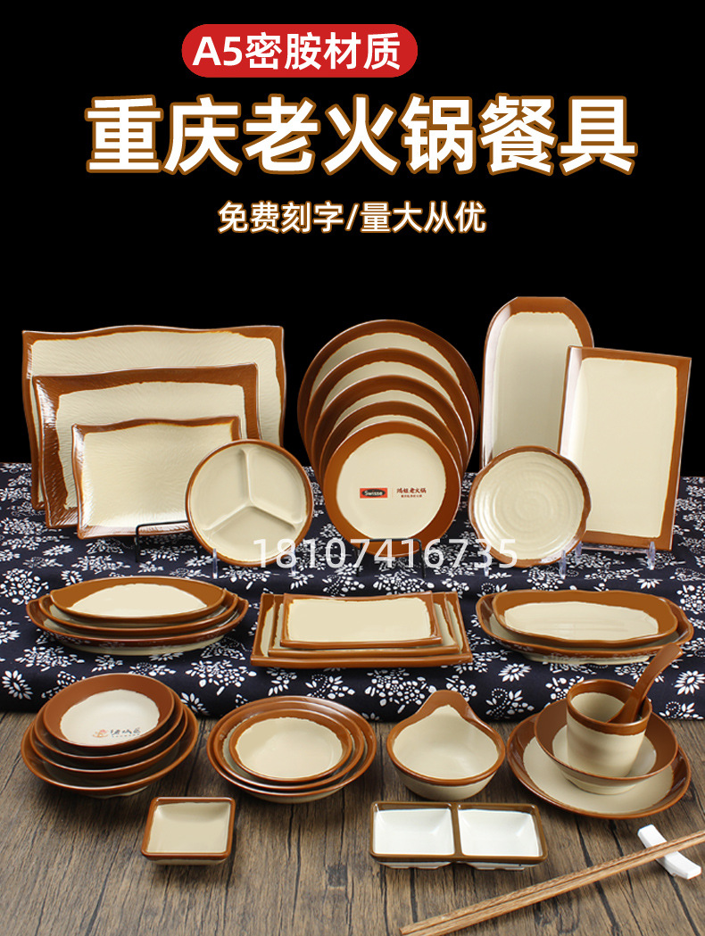 구식 흙 그릇 충칭 시립 냄비 반찬 접시 상업 멜라민 모방 흙 도자기 그릇 판 서브넷 붉은 냄비 레스토랑 식기스토어 가기