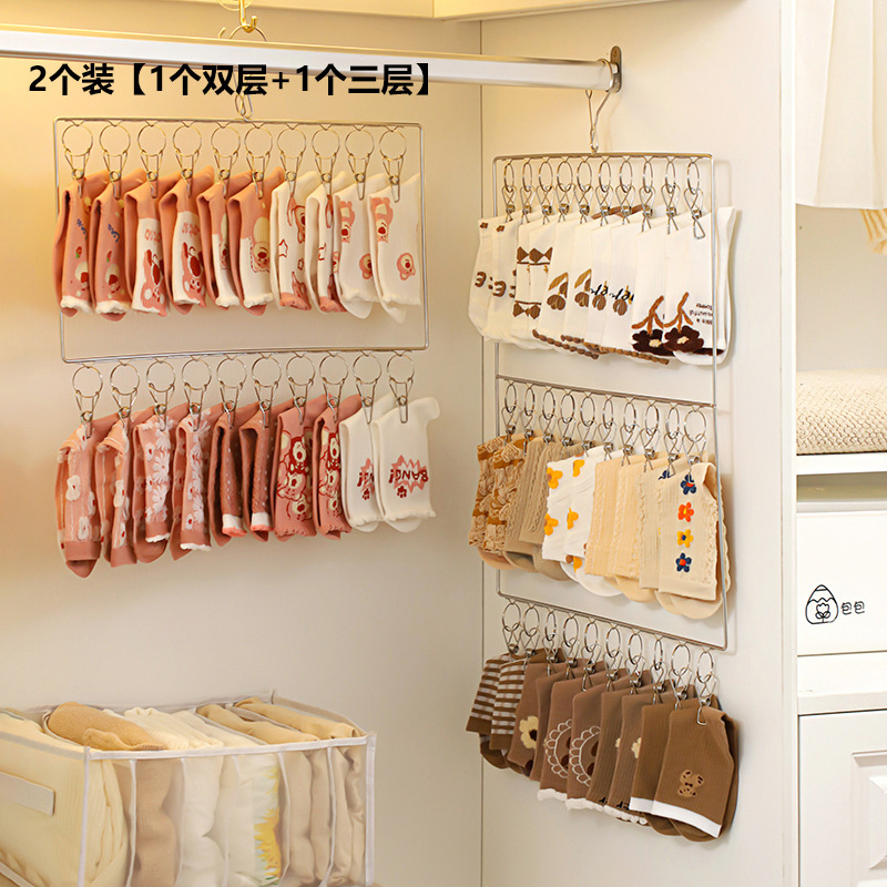 • 2팩[2단+3단] 스테인리스 사각 양말걸이