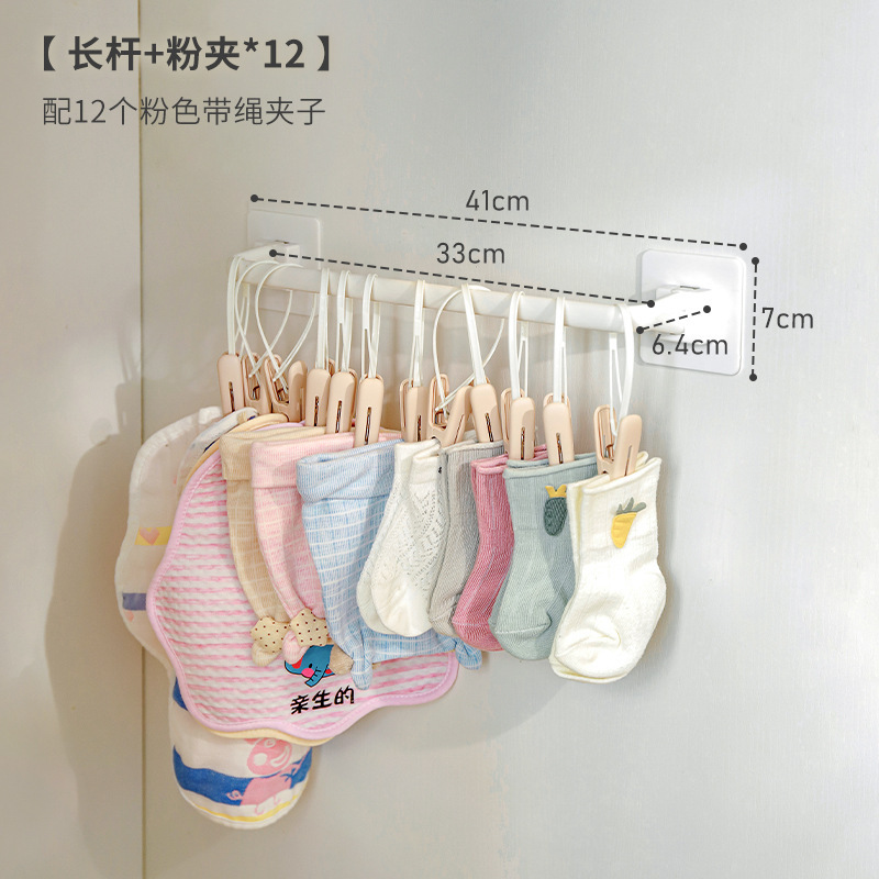 • 펀치 없는 긴 보관 막대 + 핑크색 로프 클립 12개
