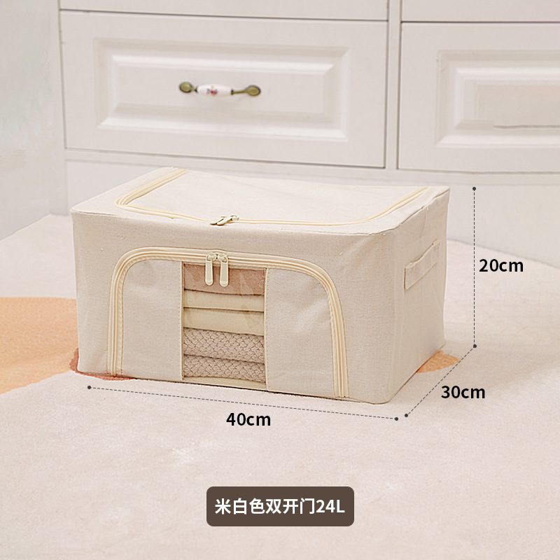• 중형 24L [양문/투명창/접이식/재택가능] 오프화이트 면 및 린넨 수납함 WG-3467