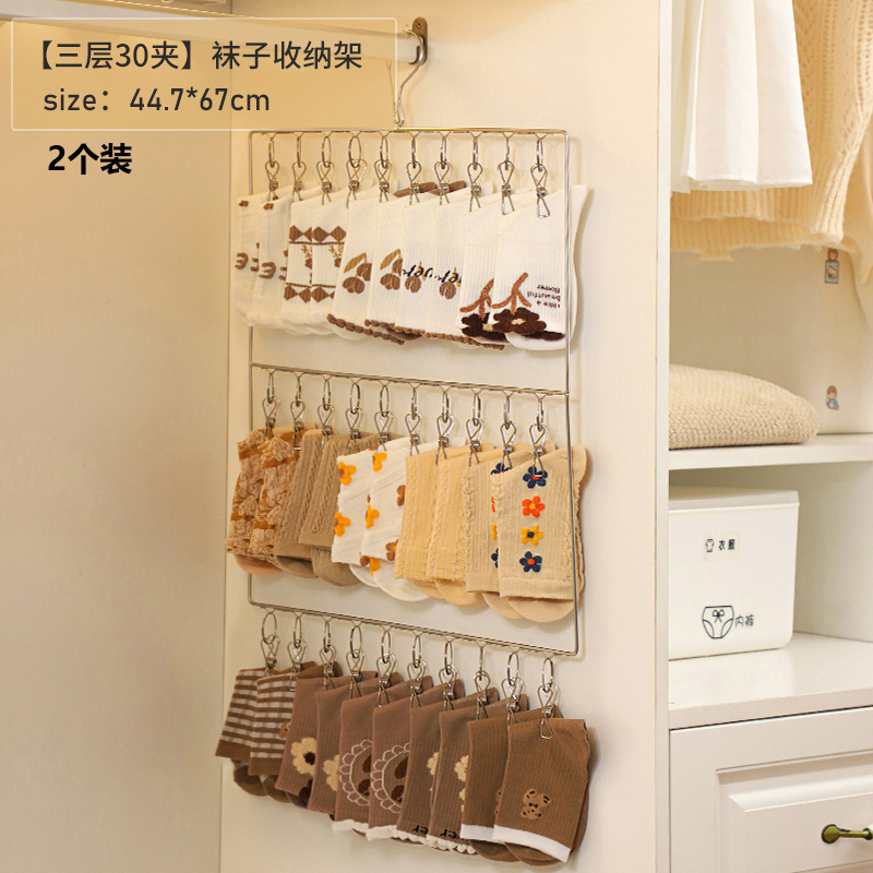 • 2팩[3단/클립 총 30개] 스테인리스 사각 양말걸이