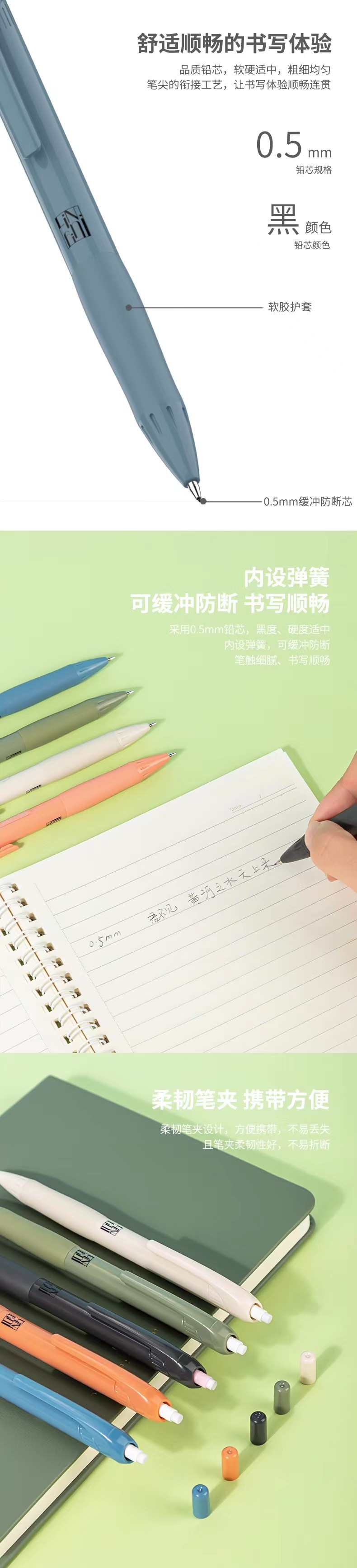 델리 문구 음악 요소 버퍼 안티 깨진 코어 자동 활동 연필 학생 0.5mm 시험 펜