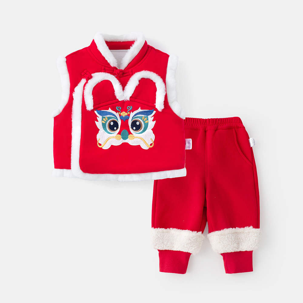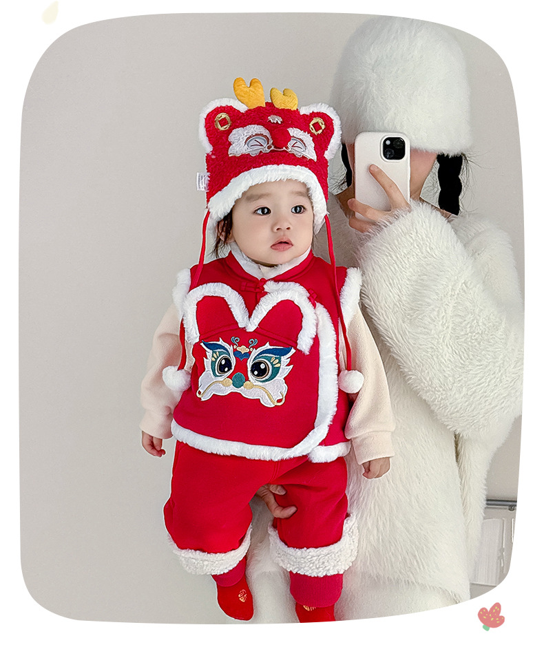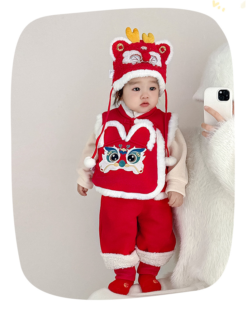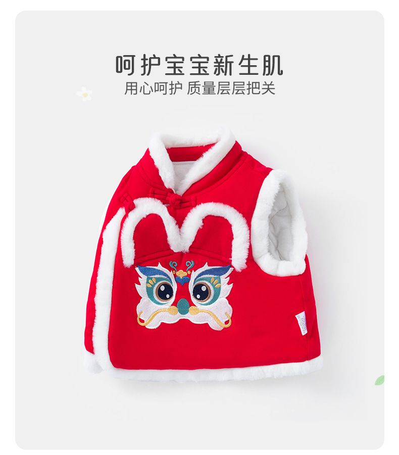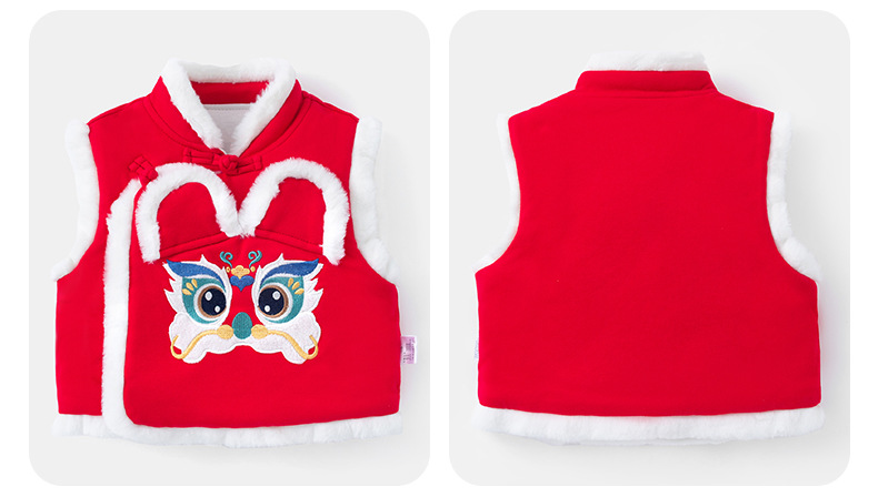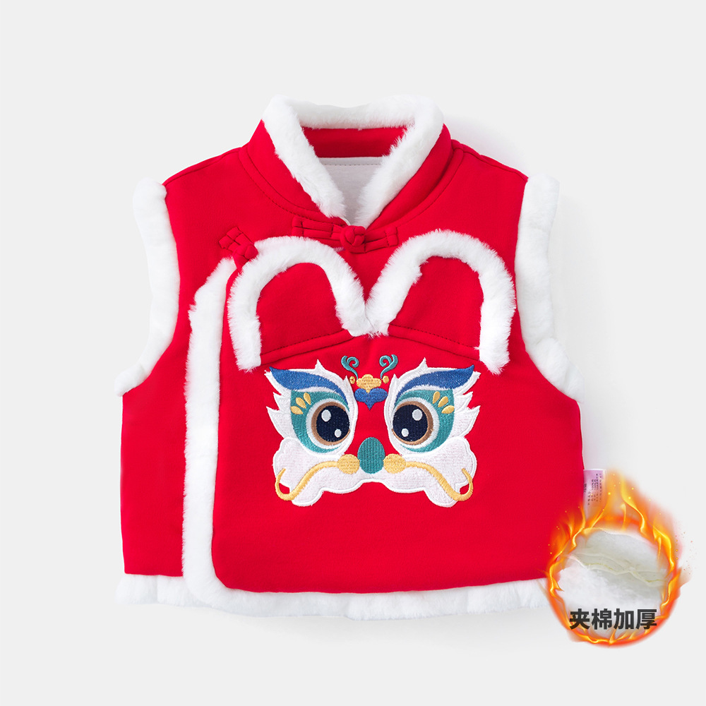 여아용 퀼팅 두꺼운 라이온 댄스 조끼 2025 겨울 조끼 3950 남아용 따뜻한 겉옷 조끼 새해맞이 의상