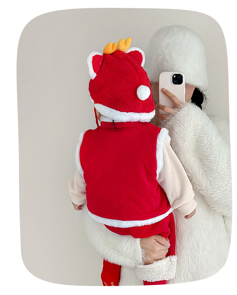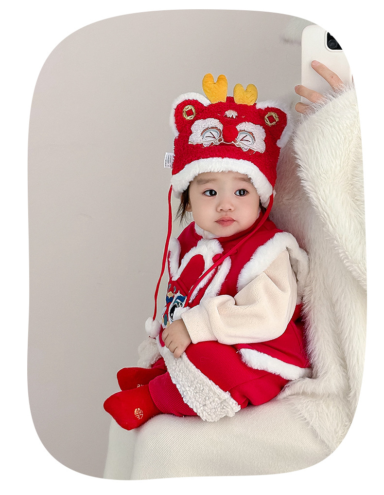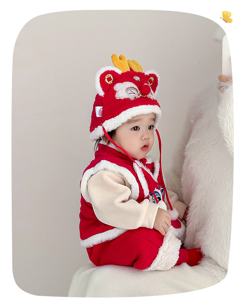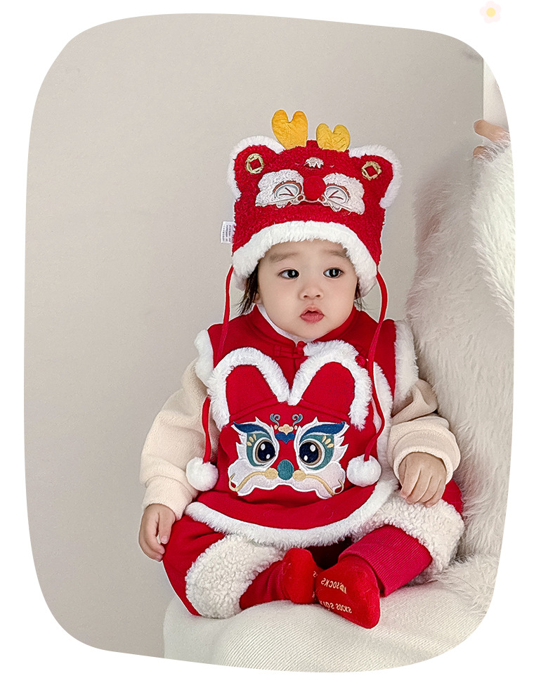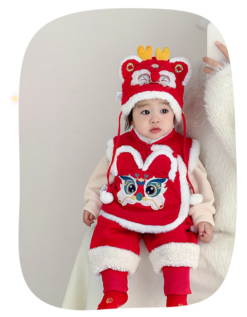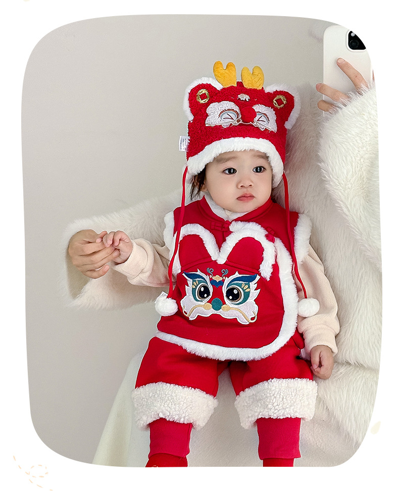 여아용 퀼팅 두꺼운 라이온 댄스 조끼 2025 겨울 조끼 3950 남아용 따뜻한 겉옷 조끼 새해맞이 의상