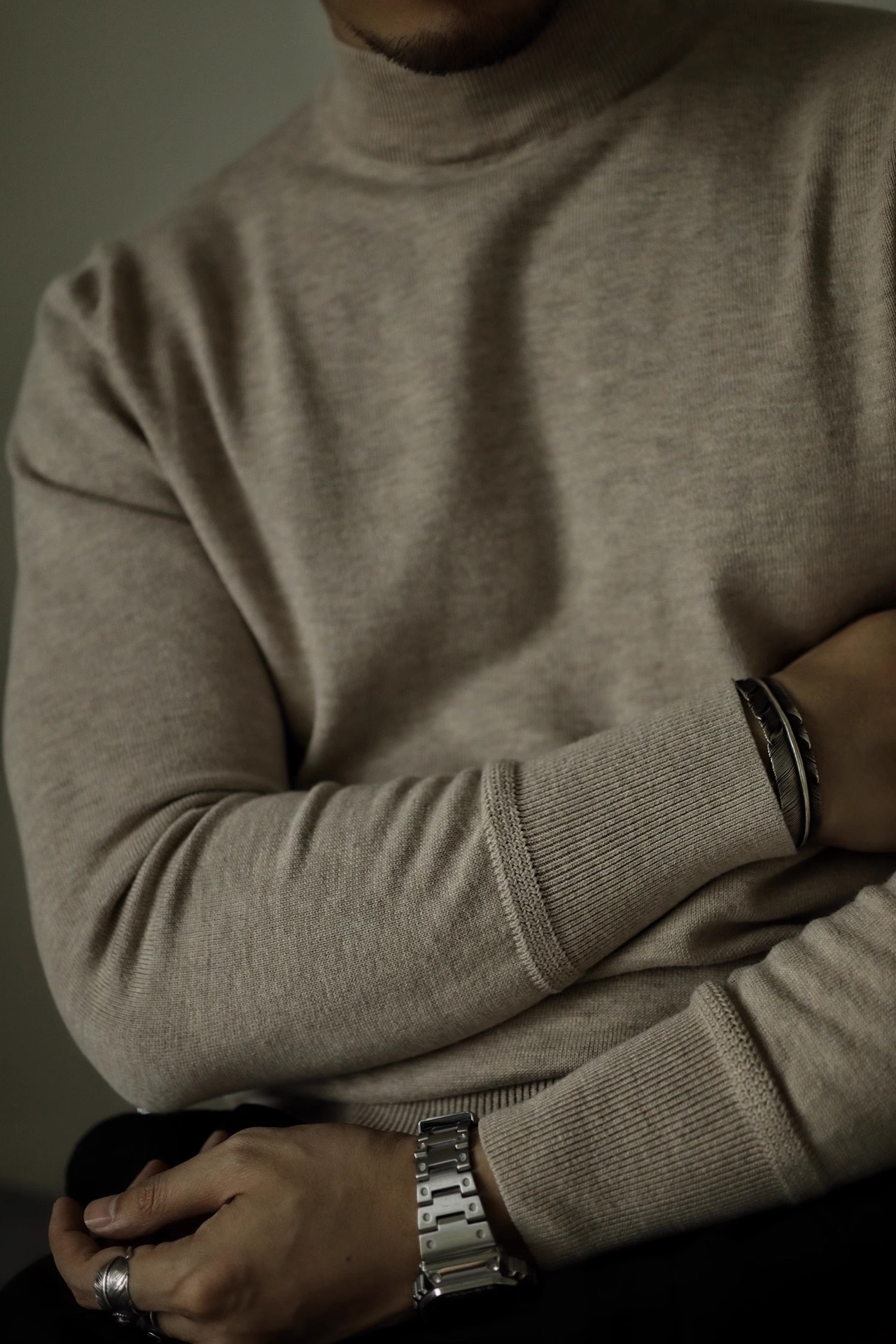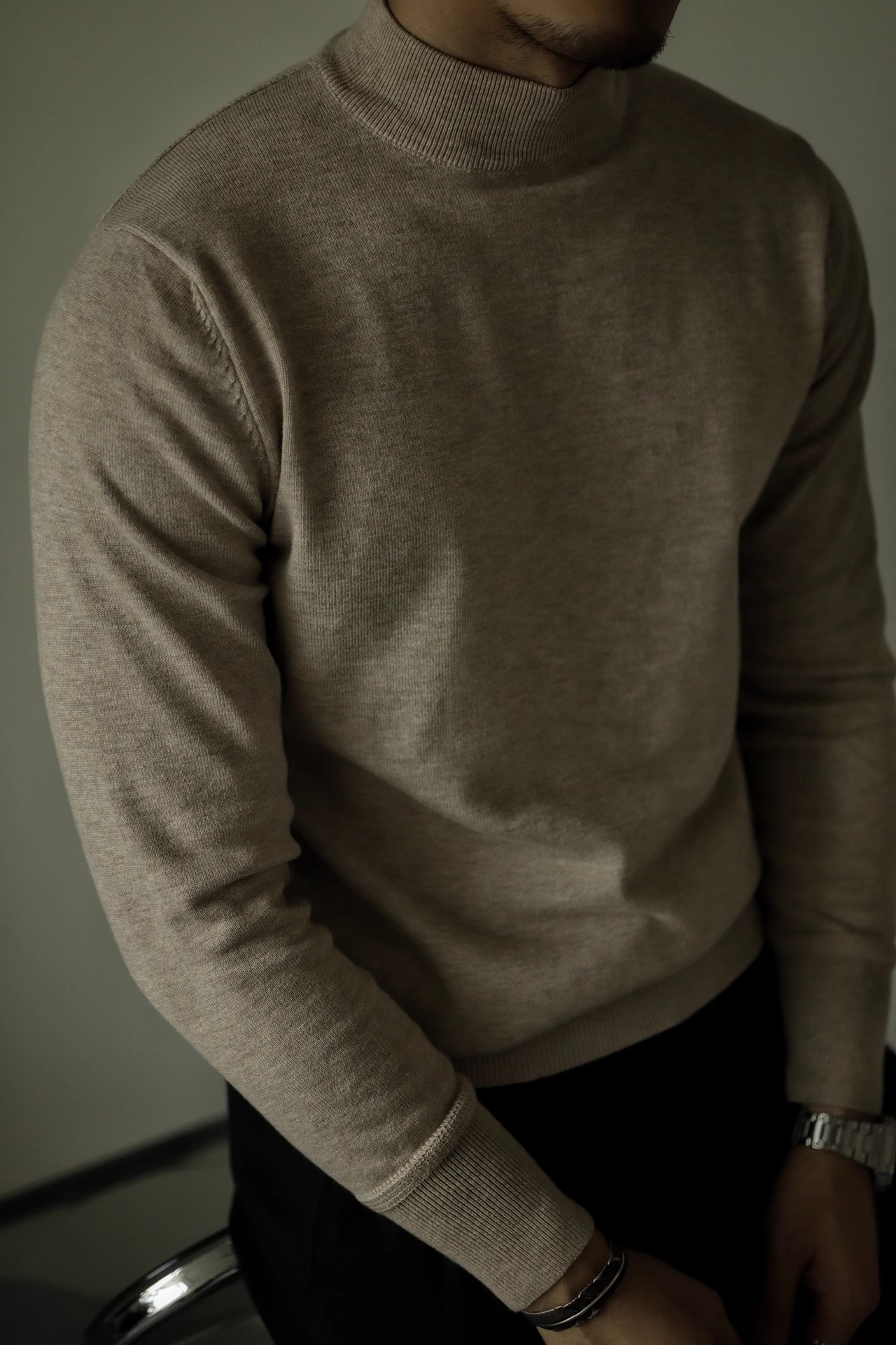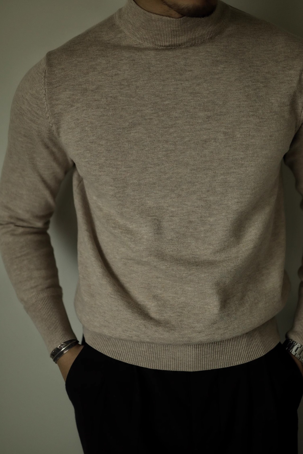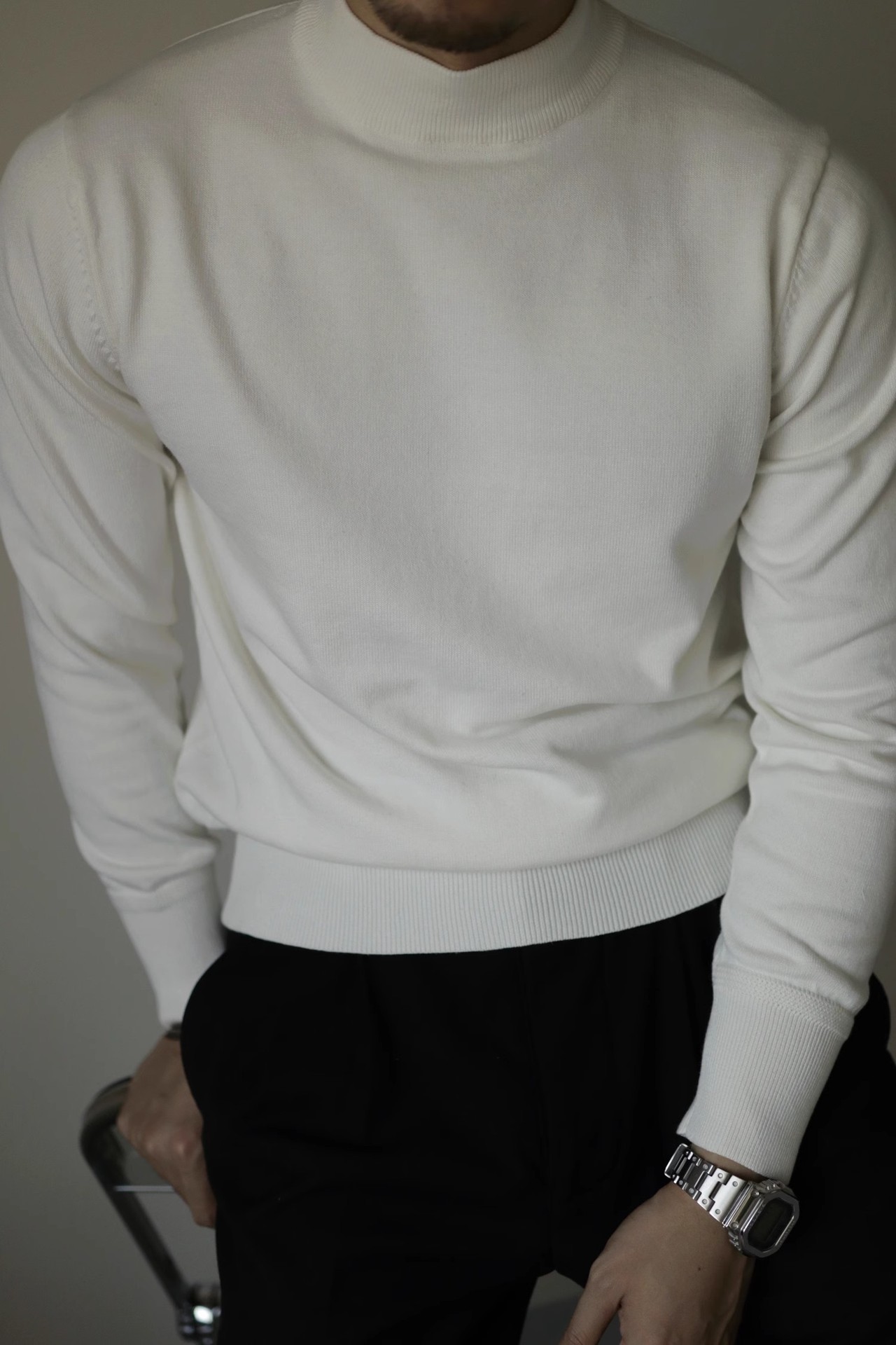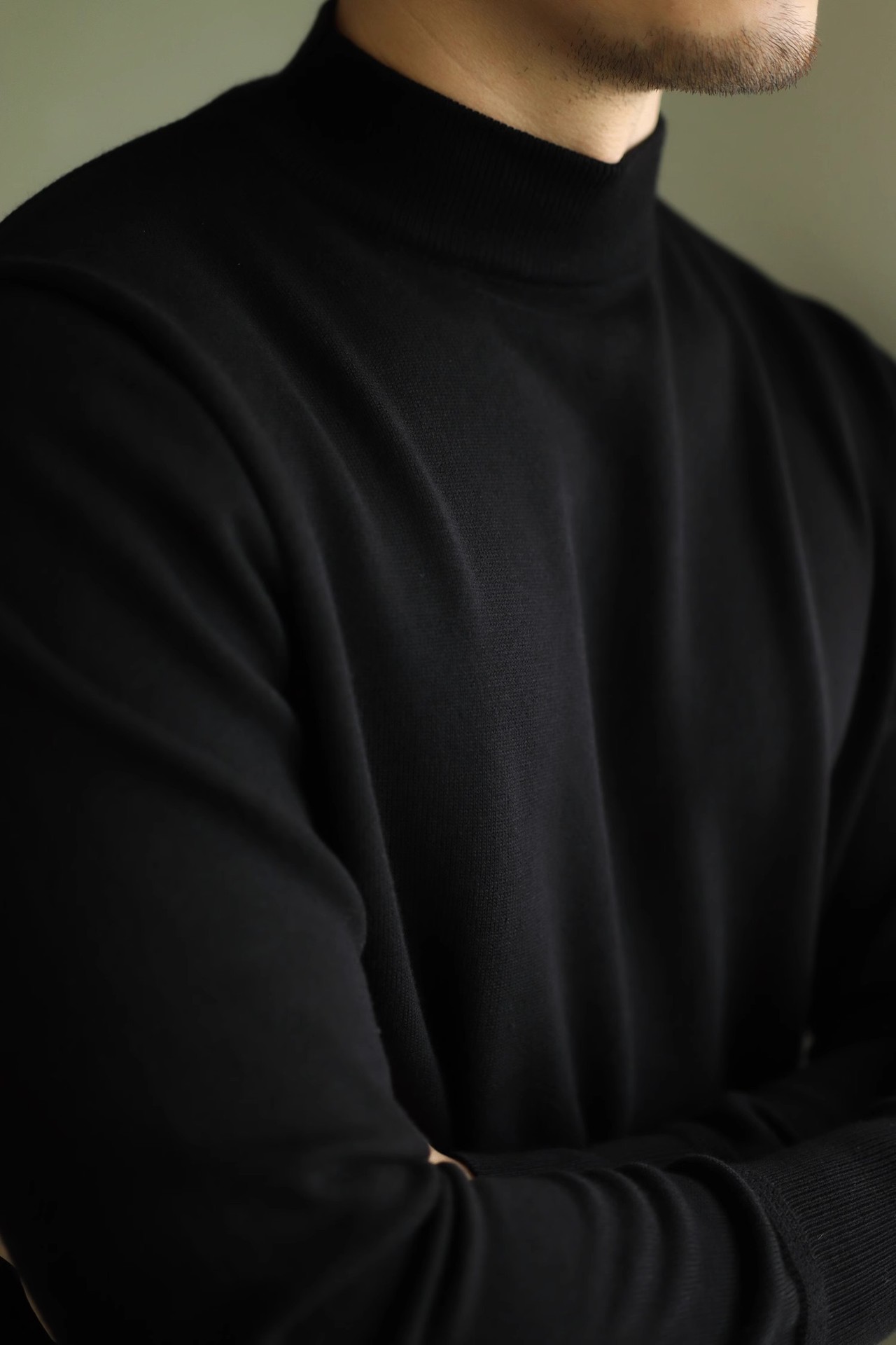 아메리칸 레트로 하프 하이 넥 따뜻한 블랙 스웨터 남자 내부 니트 베이스 스웨터 Ami Khaji
