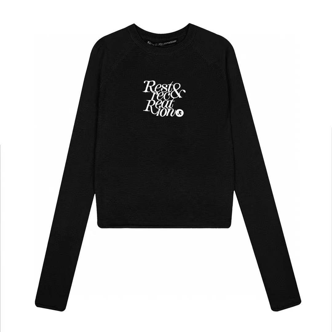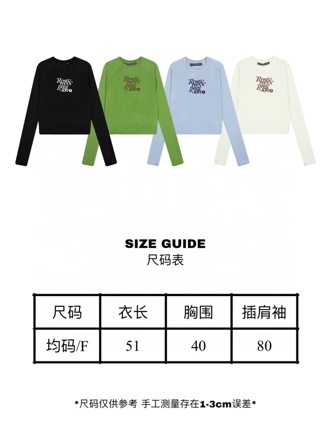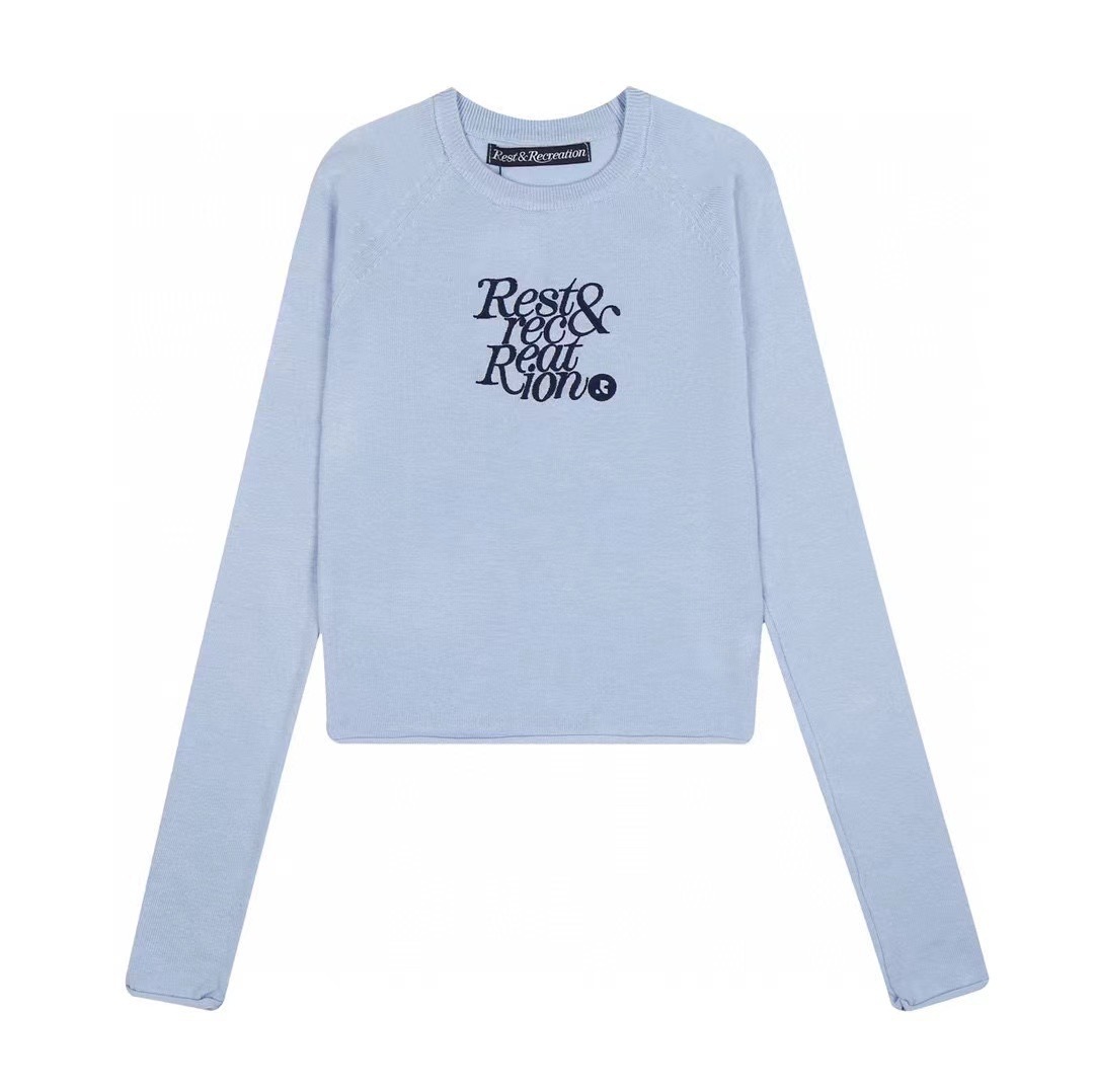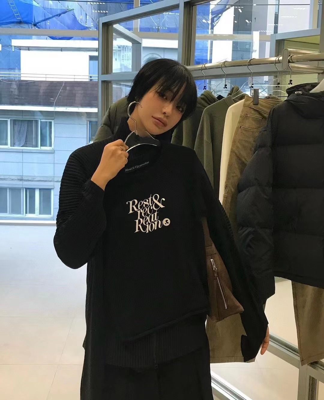 한국 레스트 RR 클로티팀 자수 RR 롤업 소매 긴팔 슬림핏 스웨터 니트 여성 가을용스토어 가기