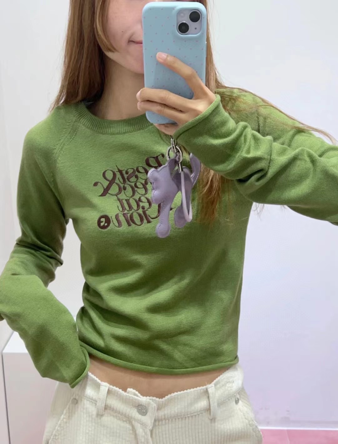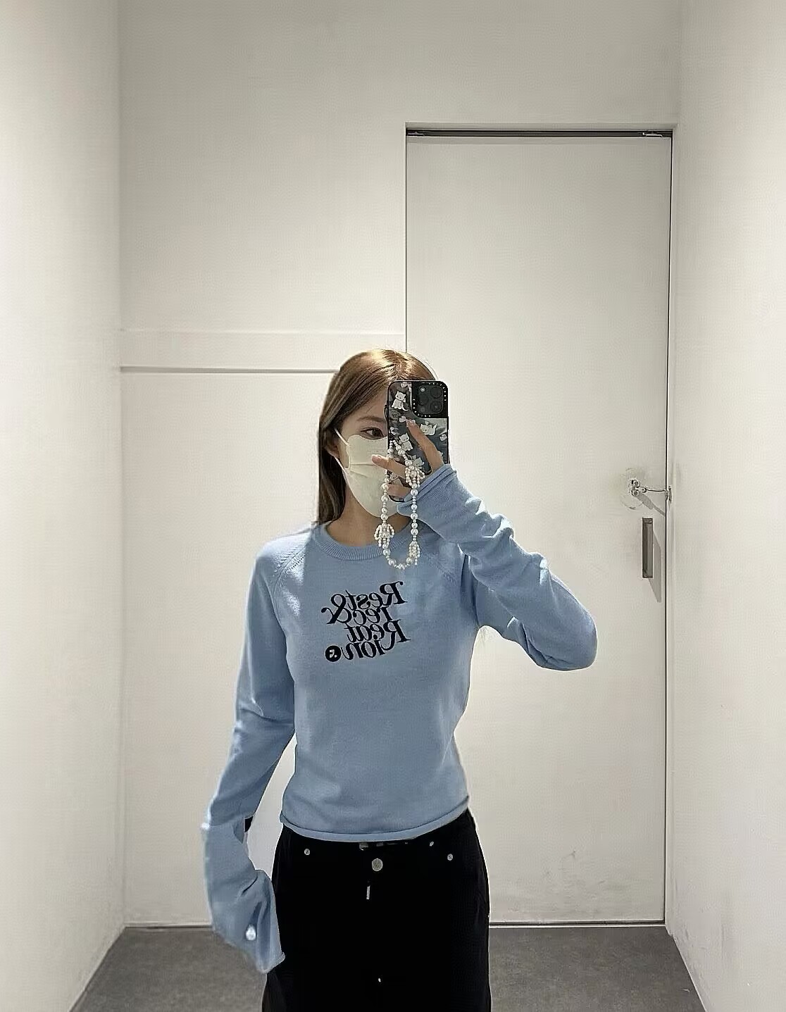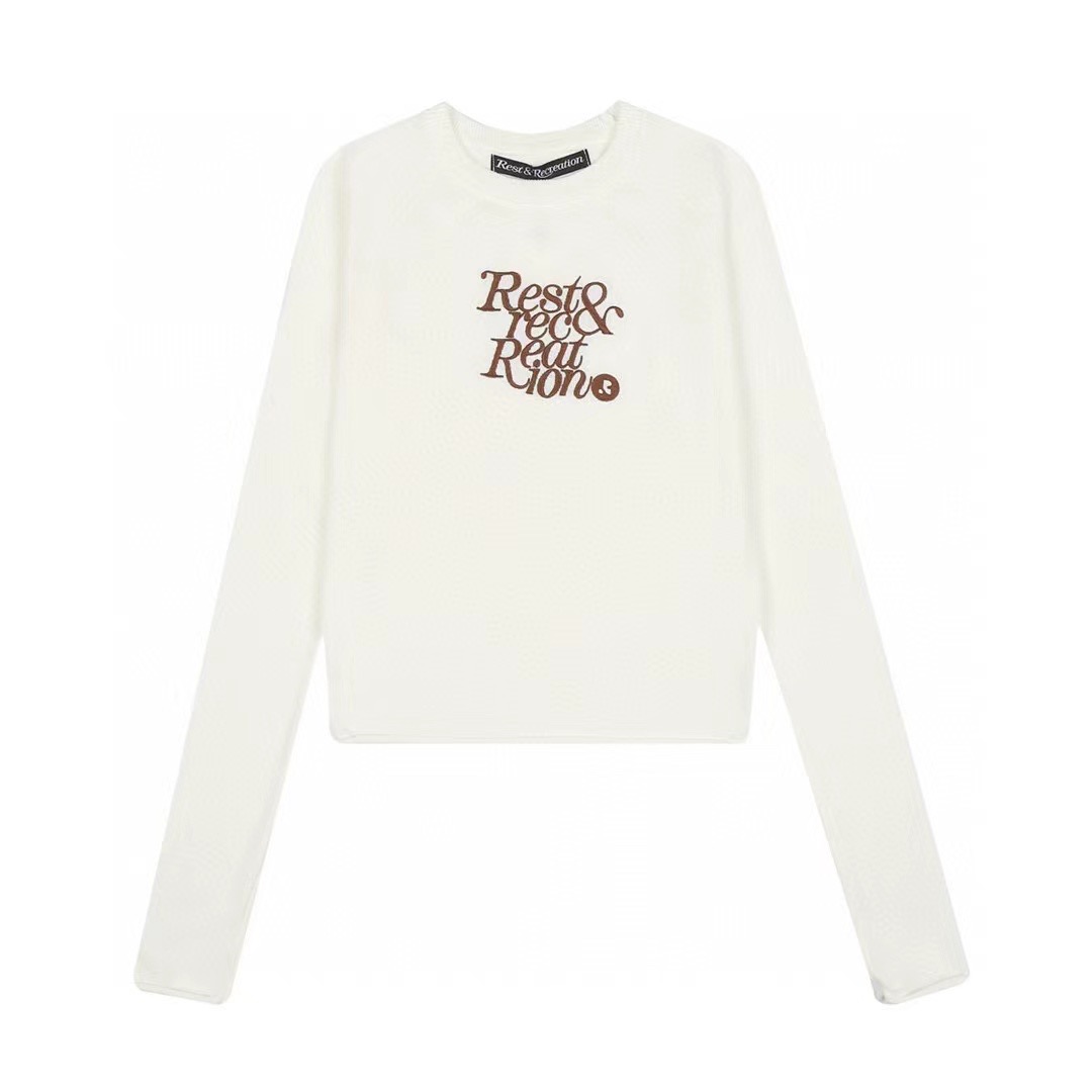 한국 레스트 RR 클로티팀 자수 RR 롤업 소매 긴팔 슬림핏 스웨터 니트 여성 가을용스토어 가기