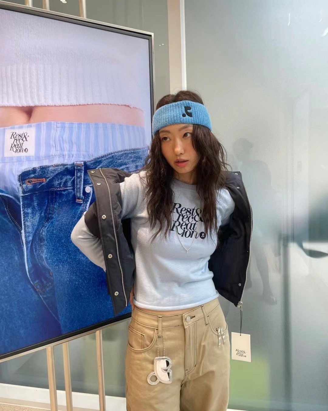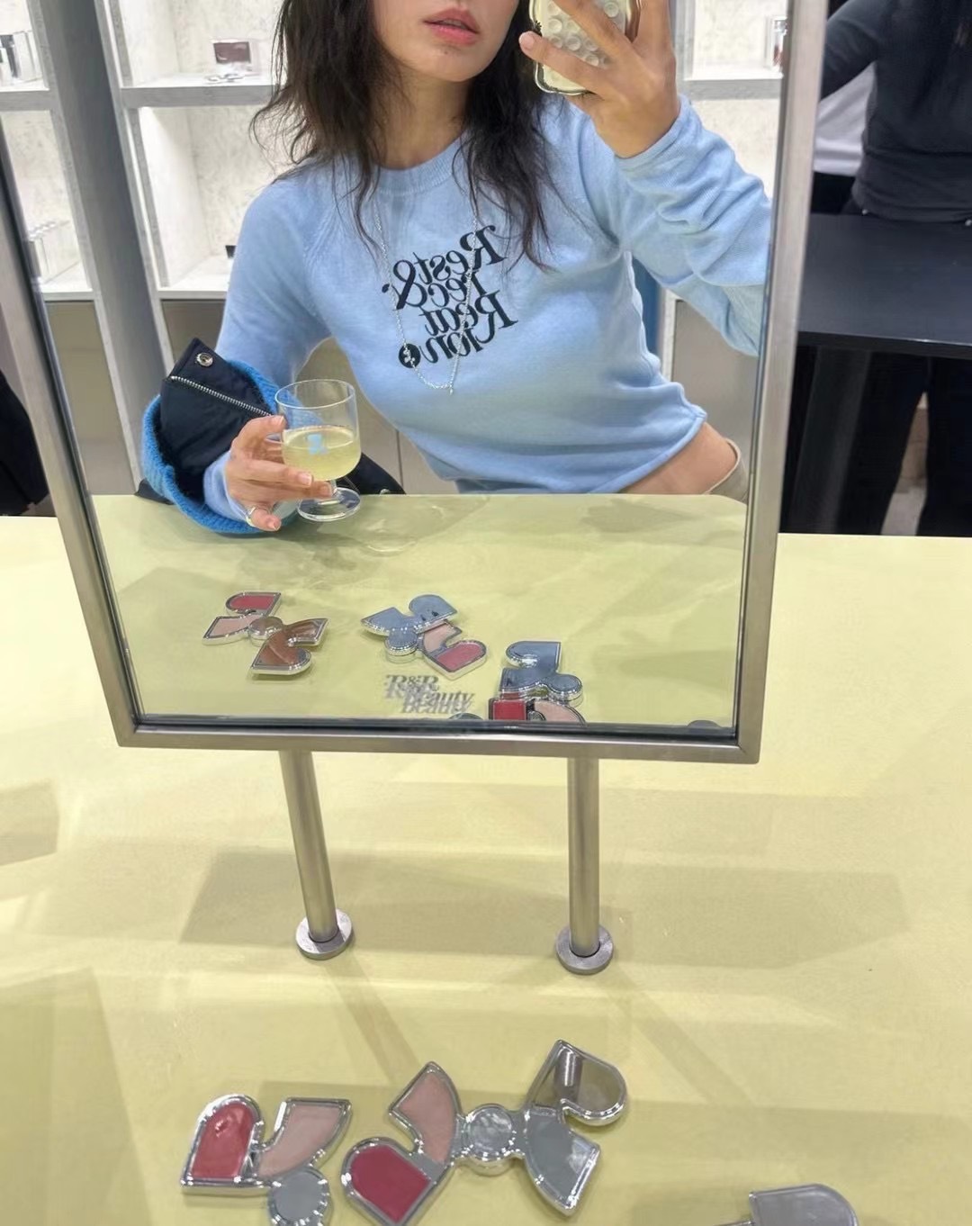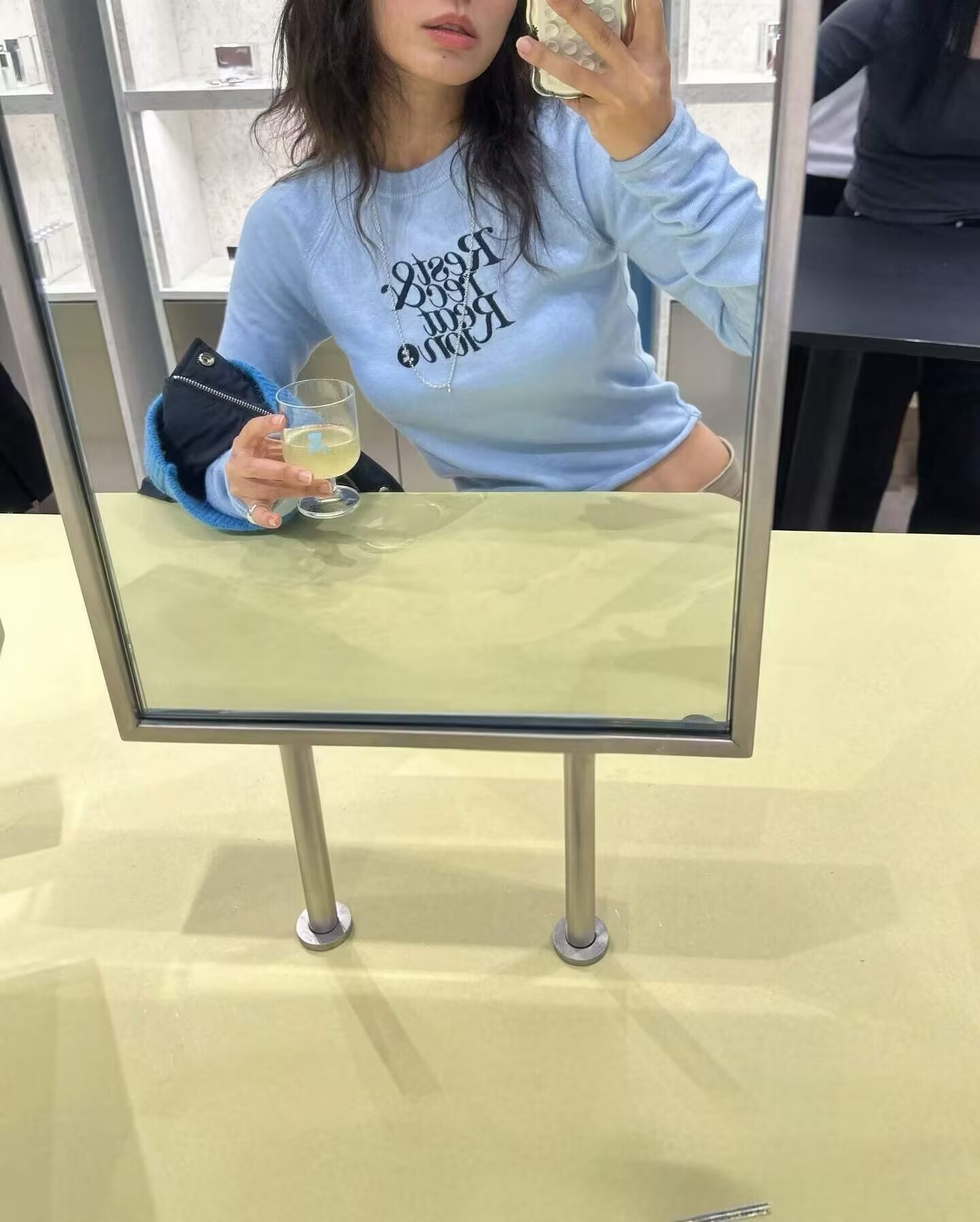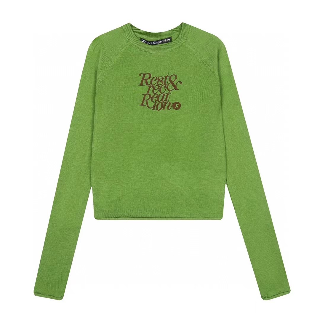 한국 레스트 RR 클로티팀 자수 RR 롤업 소매 긴팔 슬림핏 스웨터 니트 여성 가을용스토어 가기