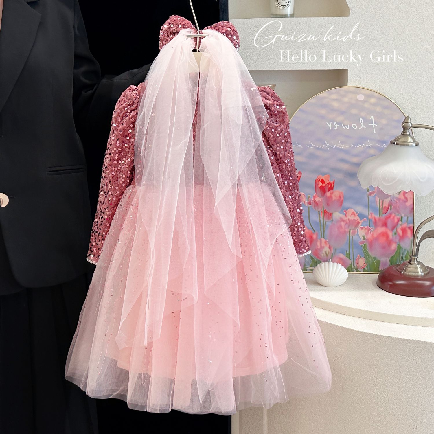 프린세스 원피스 소녀의 반짝이는 스템 핑크 중공업 원피스 소녀의 생일 원피스 메시 기모 폰테 원피스스토어 가기