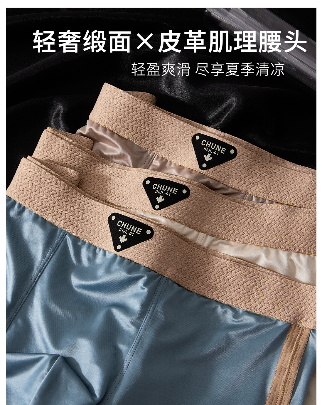 시원한 얼음 실크 남성 속옷, 가벼운 럭셔리 새틴, 부드럽고 매끄러운 남성 복서 반바지, 청소년 소년 바지