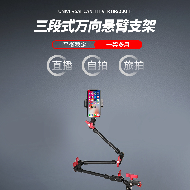 Situ-02 마그네틱 휴대 전화 클립 더블 조인트 유니버설 매직 암 라이브 사진 오버 헤드 캔틸레버 브래킷
