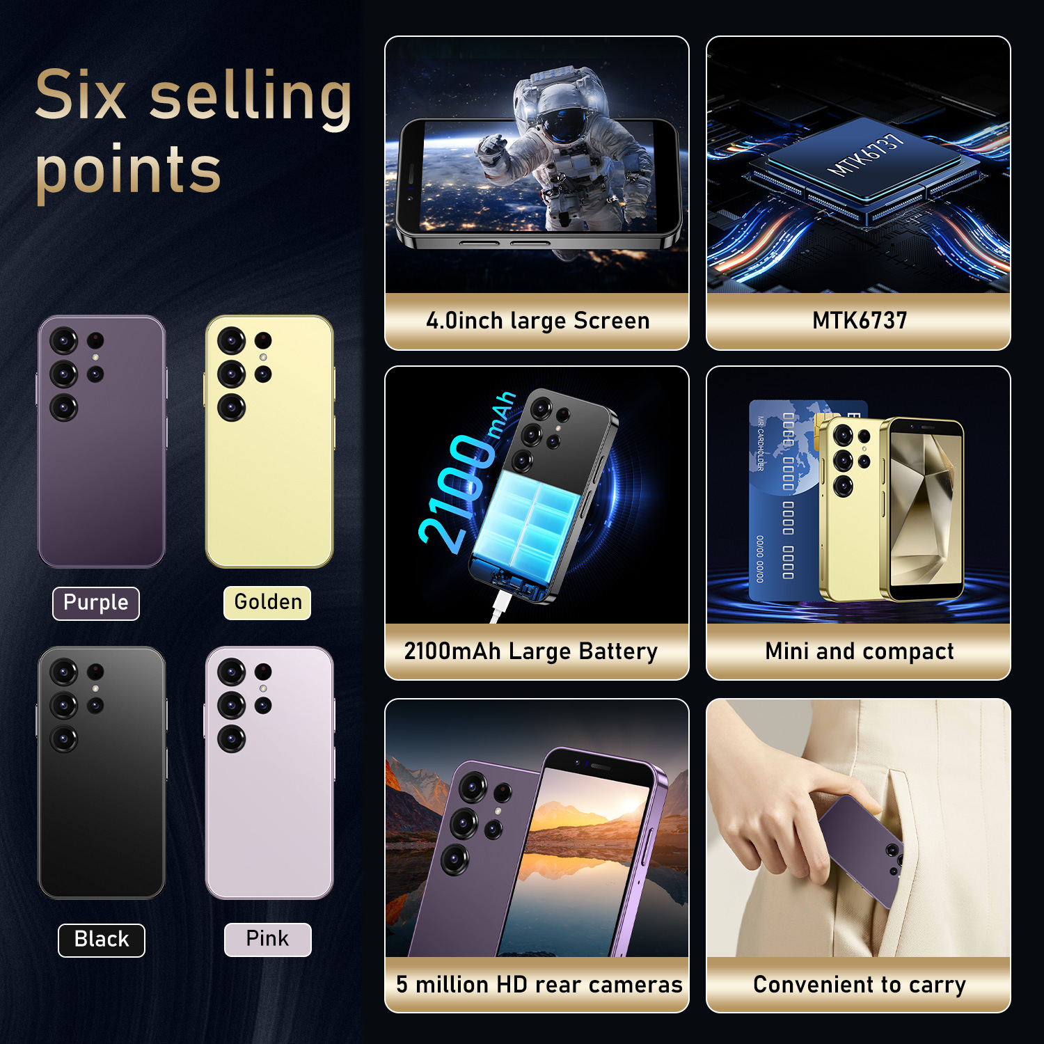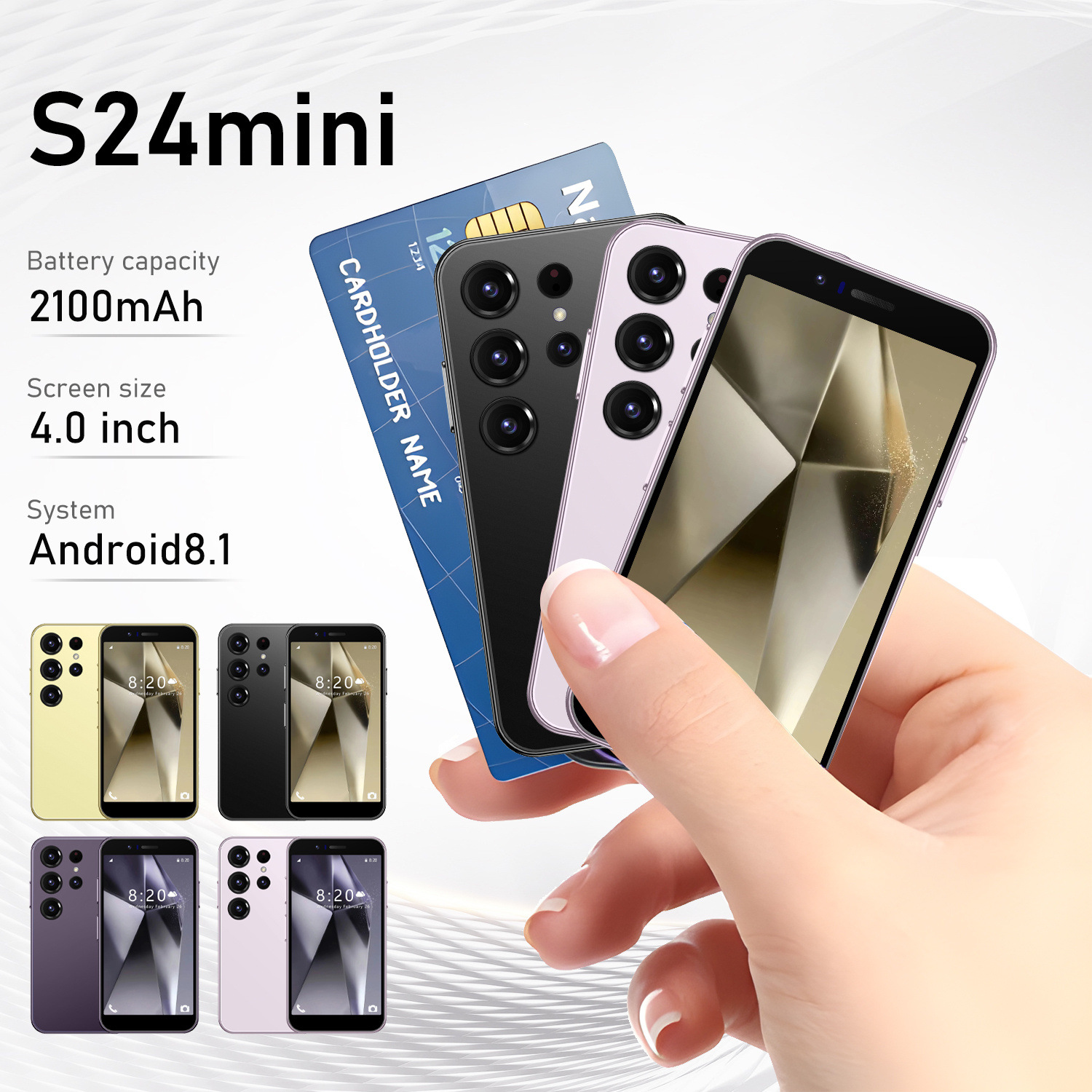 국경 간 휴대 전화 새로운 S24 미니 미니 4.0inch 안드로이드 8.1 듀얼 카드 어린이 스마트 카드 소형 휴대 전화