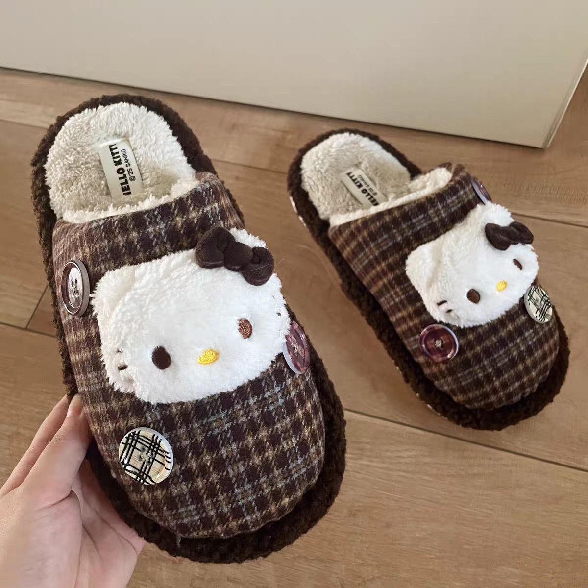 KT 야옹면 슬리퍼 여성 귀여운 만화 겨울 두꺼운 바닥 미끄럼 기모 두꺼운 따뜻한 마오 마오 슬리퍼